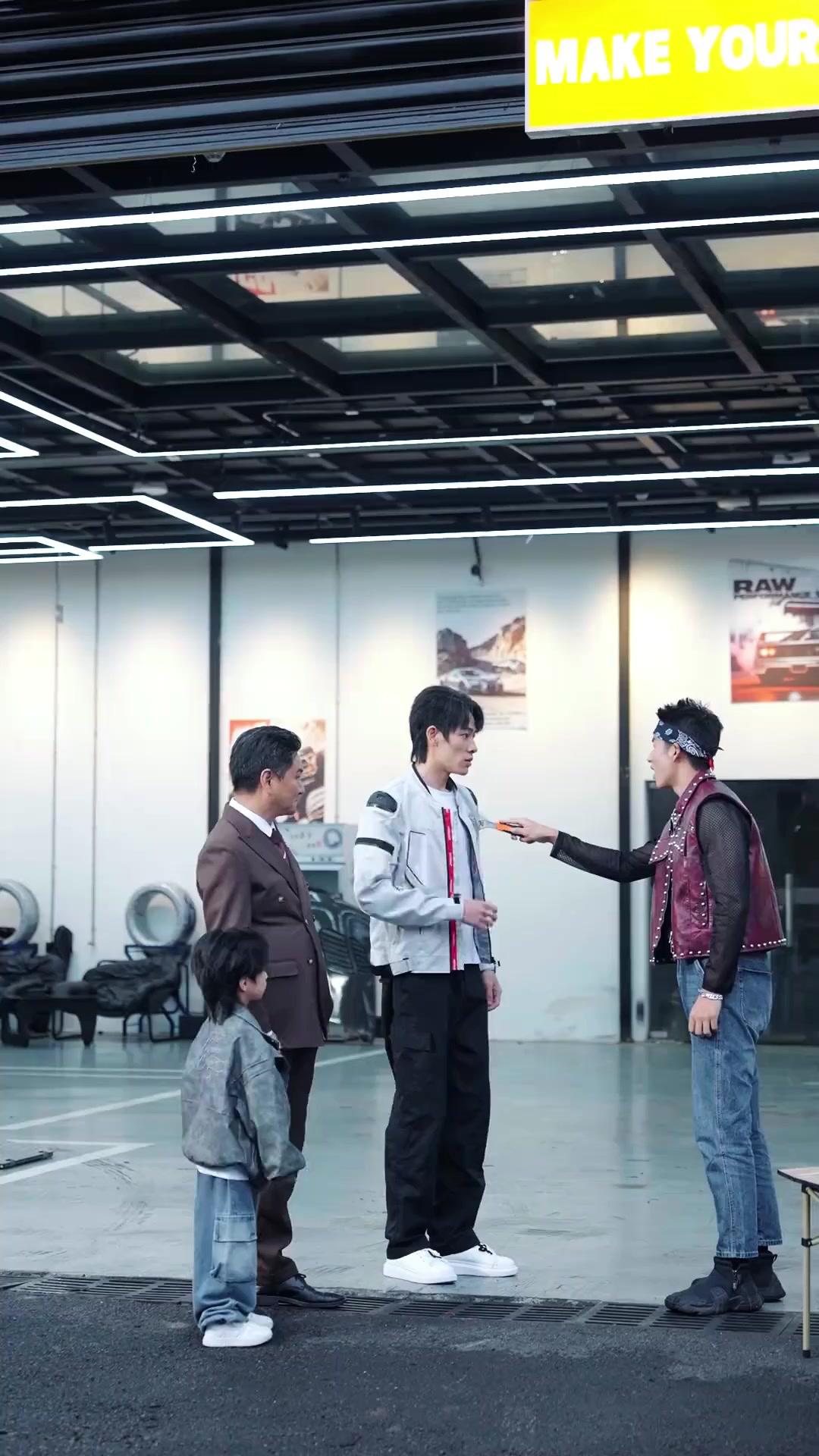 في ورشة سيارات مُضاءة بضوءٍ باردٍ يشبه تلك التي تظهر في مشاهد الأفلام ذات الطابع الحضري، تتكشف لحظةٌ لا تُنسى من مسلسل (مدبلج) سائق الشاحنات، أقوى مما تتخيل — حيث لا تدور الأحداث حول شاحنةٍ أو طريقٍ وعر، بل حول إنسانٍ يحمل في جسده قوةً خفيةً لم تُكتشف بعد. المشهد يبدأ بثلاثة أشخاص يقفون تحت لافتة ضخمة كُتب عليها «اجعل حلمك يتحقق»، لكن اللافتة هنا ليست مجرد ديكور؛ إنها تُشكّل تناقضًا دراميًّا مع ما يحدث على الأرض: رجلٌ في بدلة بنيّة فاخرة، يحمل في عينيه نظرةَ الأب المُتفرّج المُتأنّي، وطفلٌ صغيرٌ يرتدي جاكيتًا رماديًّا مُهترئًا، وكأنه يُحاكي شخصية البطل الصغير في أفلام الكونغ فو القديمة، ورجلٌ آخر يرتدي جاكيتًا أبيض مُصمّمًا بخطوط حمراء، يُشبه ملابس سائقي السباقات، لكنه يقف بثباتٍ غير مُبالٍ، كأنه يعرف شيئًا لا يعرفه الآخرون.