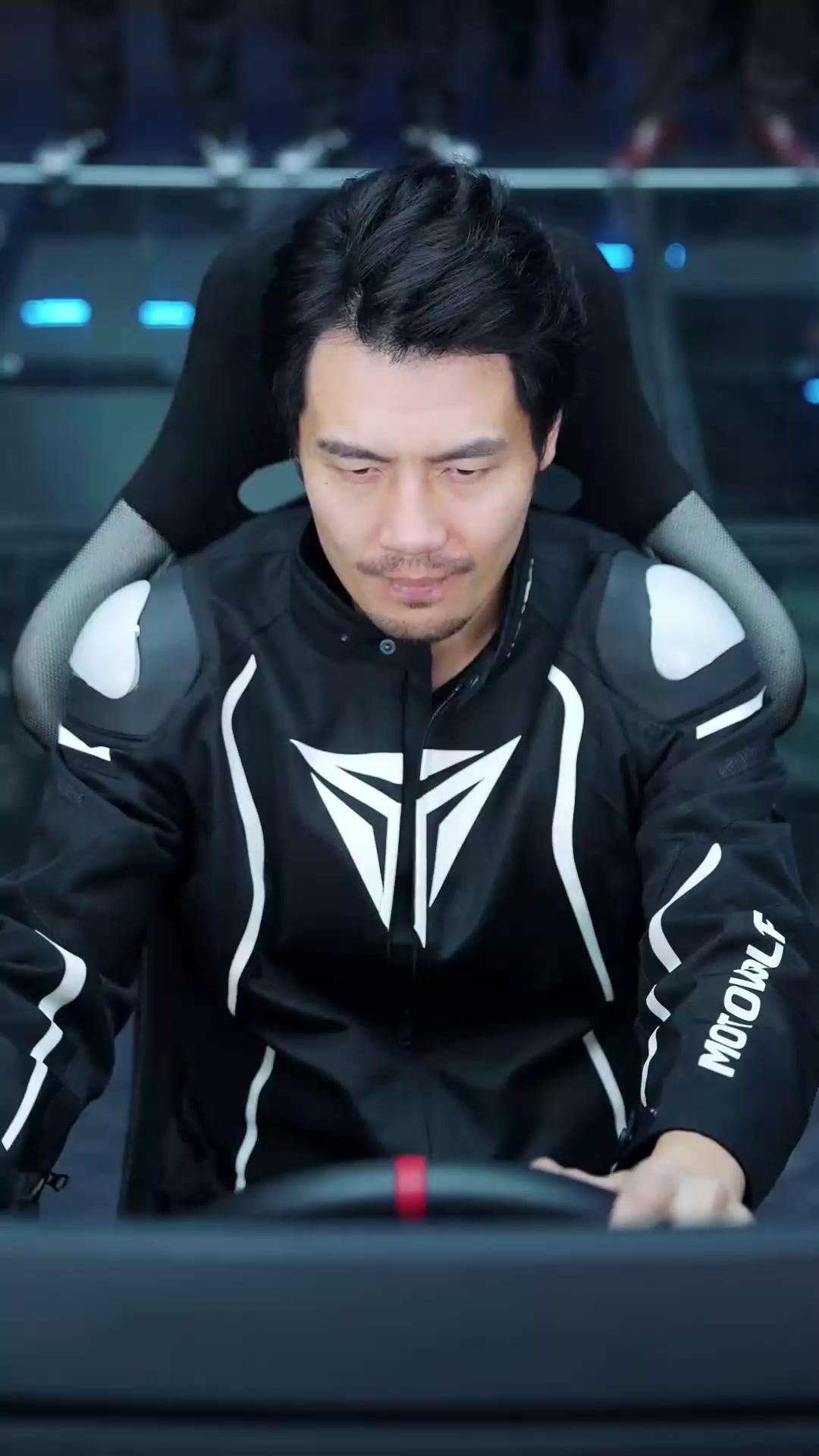 الشخص الأول، الذي يرتدي بدلة سوداء مُزينة بشعار هندسي أبيض وكتابات «MOTOWOLF» على الأكمام، يبدو في البداية هادئًا، مُسترخيًا، كأنه يلعب في وقت فراغه. لكن بمجرد أن تظهر كلمة «انطلق» على الشاشة، يتغير كل شيء. يُمسك بالمقود بثبات، وعيناه تُحدّقان في الشاشة وكأنما يُراقبان حياةً أخرى تمرّ أمامه. لا يُحرّك جسده كثيرًا، لكن انحناءات إبهامه على عجلة التوجيه تكشف عن تركيزٍ مُتزايد. ثم، فجأة، يبتسم — ابتسامة خفيفة، مُتعمّدة، كأنه يقول: «أنا هنا، وأعرف ما أفعل». هذه ليست ابتسامة انتصار مبكر، بل هي إشارة إلى أنه لم يبدأ بعد. في تلك اللحظة، يُدرك المشاهد أن هذا ليس رجلًا يلعب لعبة، بل هو مُحترف يُعيد تشكيل الواقع عبر وسيلة رقمية. وعندما يُعلّق أحد المُشاهدين: «إنها الثور العجوز»، يُصبح من الواضح أن هذا الشخص ليس مجرد مُتنافس، بل رمزٌ لتجربة سابقة، لذكريات سباقات حقيقية، ربما حتى لخسائر لم تُنسى. إنها لحظة تحوّل: من المُحاكي إلى الذاكرة، ومن الذاكرة إلى الاستراتيجية.