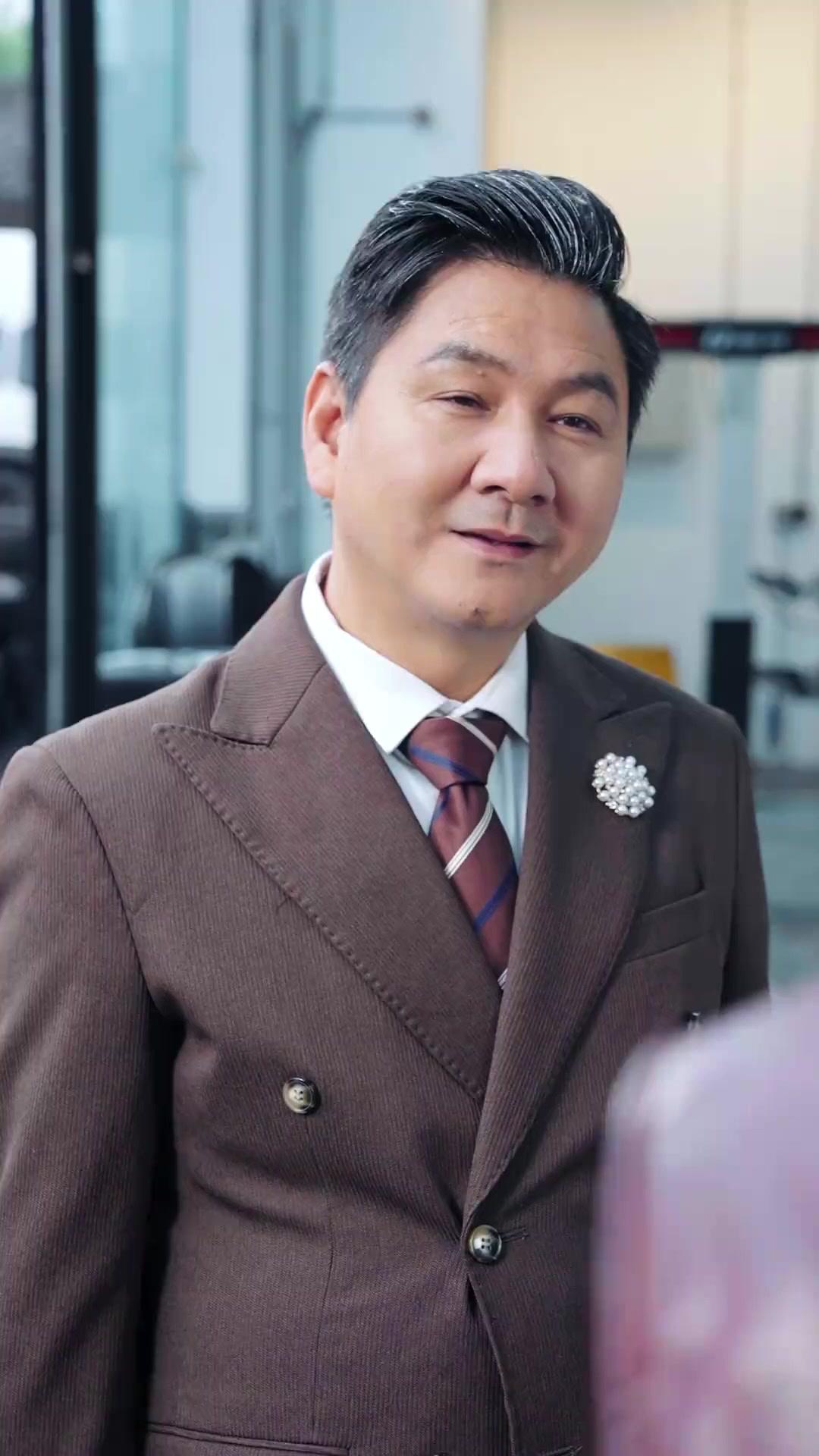 في مشهدٍ يبدأ كأنه لقطة عابرة من فيلم دراما اجتماعية, يظهر رجلٌ في بدلة بنيّة فاخرة, مُزيّنة بزِرّة لؤلؤية على الصدر, وربطة عنق مخطّطة بعناية — كأنه قادم من اجتماع مجلس إدارة أو حفلة زفاف أثرياء. لكن ما إن يُوجّه نظره إلى اليمين حتى تتبدّل ملامحه: ابتسامة خفيفة, ثم نظرة مُتعمّقة, ثم انحناء خفيف في الجسد, وكأنه يُعدّ نفسه لاستقبال شيءٍ لا يُقدّر بمال. هنا, تبدأ القصة الحقيقية — ليس بالكلمات, بل بالحركة, وبالصمت الذي يحمل أكثر من ألف كلمة.