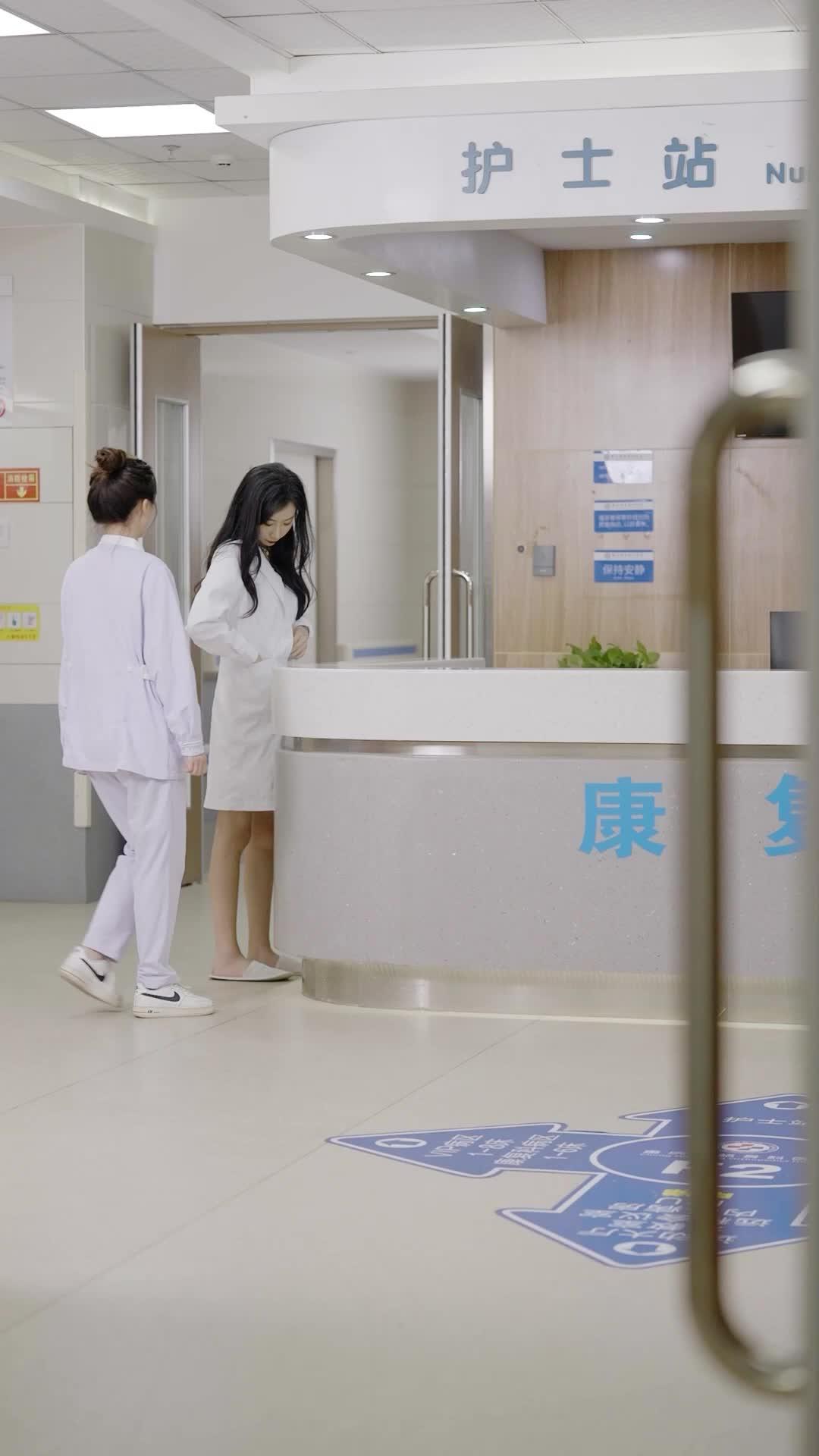 In the sterile, fluorescent-lit corridor of what appears to be a modern rehabilitation hospital—signs reading ‘Nurse Station’ and ‘Rehabilitation Department’ in clean blue characters—the air hums with routine. Two women in white uniforms move with practiced ease: one, with her hair tightly coiled into a bun, wears pale lavender scrubs bearing the insignia of a local medical center; the other, long black waves cascading past her shoulders, dons a crisp white lab coat over a knee-length dress, pearl earrings catching the light like tiny moons. She’s not just any doctor—she’s Dr. Lin, whose presence alone seems to recalibrate the emotional gravity of the space. Her smile at the counter is polished, almost rehearsed, but her eyes flicker with something sharper beneath the surface. A moment later, that composure shatters.