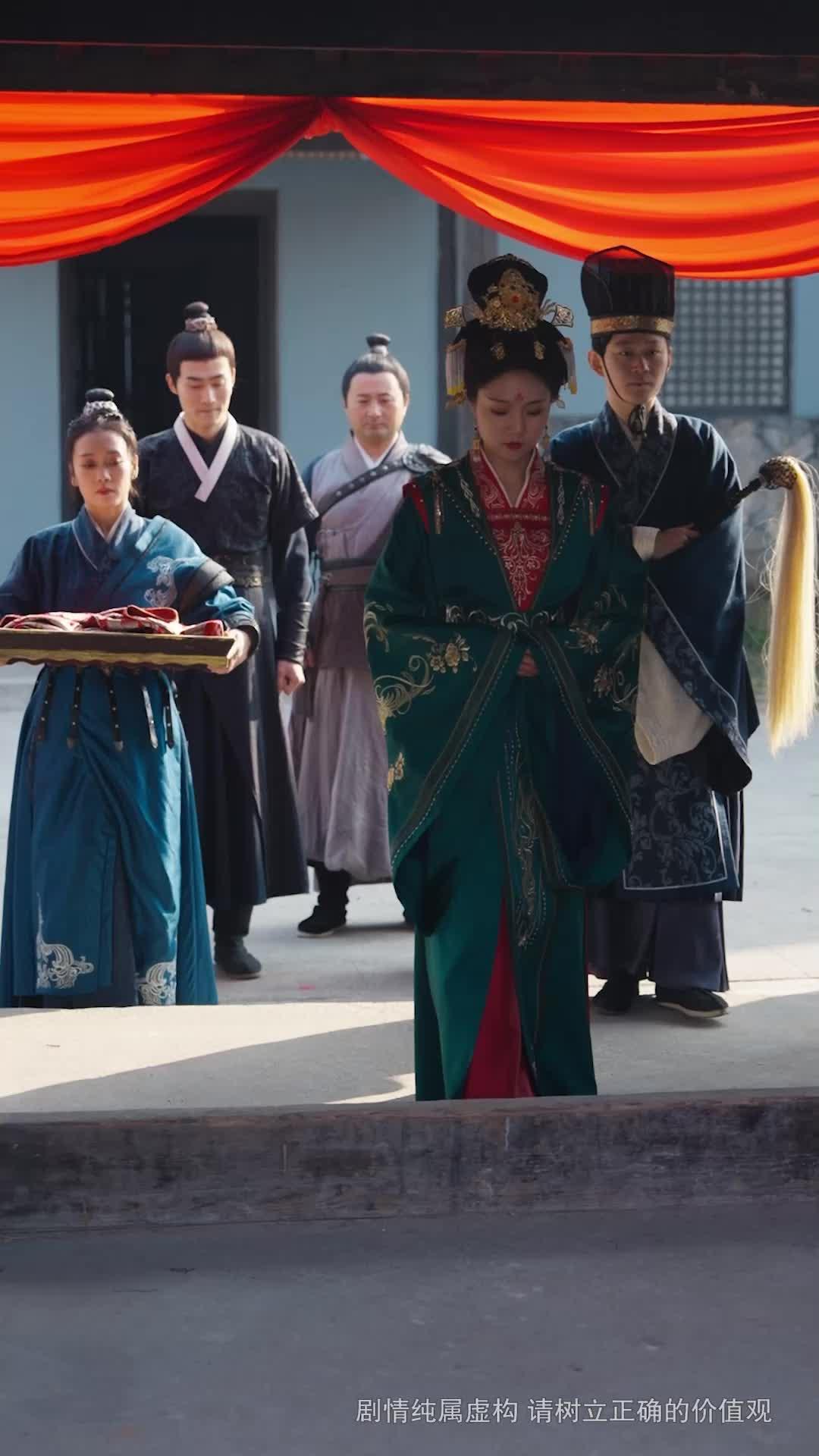 In the opening frames of *A Duet of Storm and Cloud*, the courtyard is bathed in daylight—crisp, unfiltered, almost cruel in its clarity. A woman in emerald silk strides forward, her robes heavy with gold-threaded phoenix motifs, her hair coiled high beneath a crown of gilded filigree and dangling tassels that sway like pendulums of fate. Her name, though never spoken aloud in these fragments, lingers in the air: Ling Yue. She does not smile. Not yet. Her hands are clasped before her, fingers interlaced with practiced restraint, as if holding back something far more volatile than breath. Behind her, attendants move like shadows—two men in dark brocade, one bearing a tray draped in crimson cloth, another gripping a long yellow sash like a weapon sheathed in silk. This is not a procession; it is a siege disguised as ceremony.