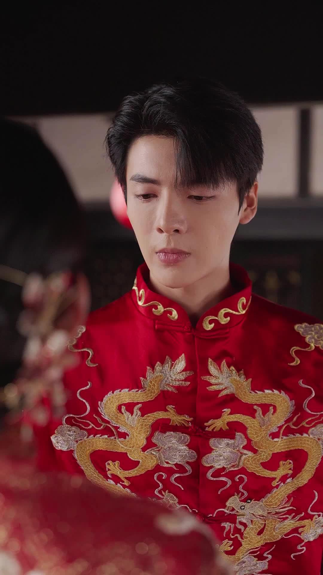 The opening frames of A Love Gone Wrong are deceptively serene—rich crimson silk, golden dragons coiled across a groom’s chest like ancient oaths, and a bride whose floral embroidery glimmers under soft lantern light. This is not a wedding; it is a ritual suspended between devotion and dread. From the very first close-up on Li Wei’s face—his eyes downcast, lips parted as if rehearsing a confession we’ll never hear—we sense the weight of unspoken history. His costume, embroidered with twin dragons chasing pearls, symbolizes imperial power and masculine authority, yet his posture betrays vulnerability. He does not stand tall; he leans slightly forward, as though bracing for impact. Meanwhile, Lin Xue, the bride, wears her grief like a second layer of brocade: her earrings tremble with each breath, her pupils dilate at the slightest shift in his expression. She doesn’t smile. Not once. Her mouth stays open—not in shock, but in anticipation of disaster. That subtle tension is what makes A Love Gone Wrong so unnerving: it weaponizes tradition. Every detail—the red curtains billowing like bloodstained sails, the scattered jujube seeds on the floor (a fertility charm turned ironic), the ceremonial table laid with raw meat and bitter greens—screams that this union was never meant to be joyful. It was meant to be sealed. And then comes the knife.