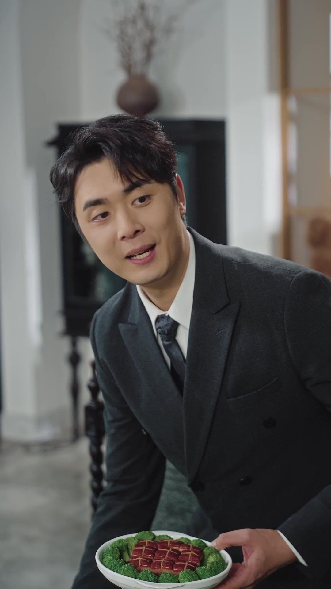What’s fascinating is how *A Son's Vow* uses food as emotional barometer. Early in the scene, Shen Yueru tastes the braised pork with genuine appreciation—her eyes soften, her shoulders relax. But after the call? She takes another bite, chews slowly, deliberately, and then sets the chopsticks down with a precision that borders on ritualistic. No crumbs. No smudge on the rim of her bowl. She is erasing herself from the meal, from the moment, from *him*. Lin Zeyu, meanwhile, pushes his own plate away—not in disgust, but in surrender. He doesn’t touch the steamed fish, its glossy sauce glistening like a warning. He stares at his empty bowl, as if trying to read the future in its porcelain depths. The camera lingers on his hands: one resting flat on the table, the other curled loosely in his lap. A man caught between duty and desire, loyalty and liberation. His tie is perfectly knotted, his cufflinks gleaming—but his left sleeve is slightly rumpled, a tiny flaw in the armor. *A Son's Vow* loves these details. They’re not accidents. They’re clues.