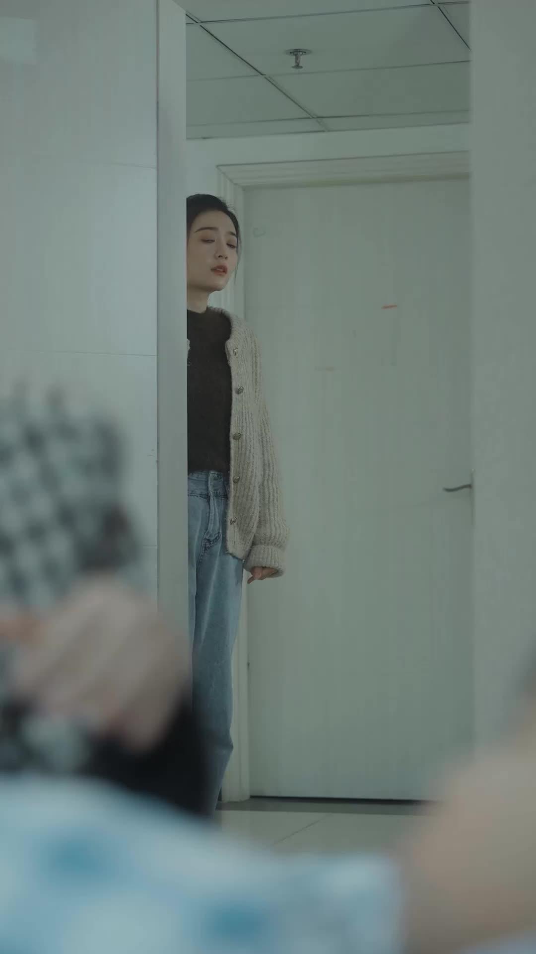 Lin Xiao’s entrance is staged like a trespass. She doesn’t walk into the corridor; she *slides* into it, half-hidden behind the doorframe, as if afraid the act of full visibility might shatter whatever fragile equilibrium exists inside. Her outfit—beige cardigan, dark sweater, faded jeans—is deliberately unremarkable, a costume of invisibility. She’s not trying to be seen. She’s trying to *witness* without being witnessed. And yet, the camera catches everything: the slight tremor in her lower lip, the way her fingers curl inward at her sides, the way her gaze flicks toward the bed before darting away again. She knows what she’ll see. She’s just not ready to let her body catch up to her mind.