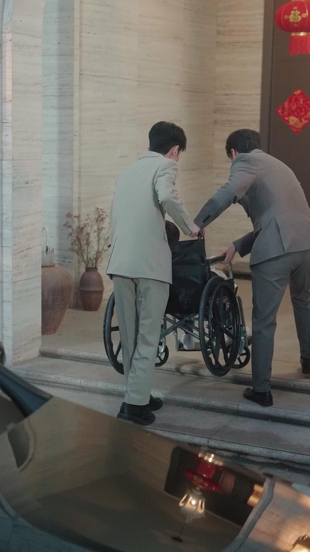 Let’s talk about the lie we tell ourselves every year: that tradition heals. That gathering, lighting incense, placing flowers—these acts are supposed to bring peace. *Another New Year's Eve* dismantles that myth with surgical precision, using just two scenes and four central figures—Lin Zhihao, Shen Yueru, Chen Mo, and Xiao Yu—to expose how ritual often serves not as catharsis, but as camouflage. The first scene unfolds at what appears to be a luxurious estate entrance, marble columns gleaming under warm sconces, red lanterns swaying gently in the breeze. Two young men in neutral-toned suits push a wheelchair up the steps—careful, synchronized, professional. But the focus quickly shifts to Lin Zhihao and Shen Yueru, who enter from opposite sides of the frame, converging like tectonic plates about to collide. Their body language is textbook avoidance: shoulders angled away, gazes deliberately averted—until Shen Yueru turns, smiles, and says something soft. The subtitles aren’t provided, but her lip movement suggests formality, perhaps even deference. Lin Zhihao responds with a nod, minimal, controlled. His eyes, however, betray him. They narrow slightly, not in anger, but in calculation. He’s assessing her tone, her posture, the way her gloved hand rests on her clutch—too still, too composed. This isn’t reunion; it’s reconnaissance. Shen Yueru’s outfit is worth noting: a tweed suit with frayed edges on the lapels, as if worn repeatedly, lovingly, but also nervously. The gold buttons are polished to a shine, yet one is slightly misaligned—tiny flaw, huge implication. She’s trying to project stability, but the garment itself whispers of wear, of repetition, of days spent rehearsing this exact moment. When she touches Lin Zhihao’s arm, it’s not affection—it’s anchoring. She needs him to stay present, to not retreat into silence. And he does, for a beat. Then he pulls away, not rudely, but decisively. That micro-gesture tells us everything: whatever bond they once shared has calcified into obligation. The reflection in the car hood becomes a recurring motif—not just visual poetry, but narrative device. In those distorted images, we see the truth they refuse to voice: they are mirrored, yet misaligned. Their lives run parallel, never intersecting cleanly again. Cut to the cemetery. Same characters, different wardrobe, same emotional architecture. Black dominates—Chen Mo in a sharp pinstripe suit with a geometric pocket square (a subtle signal of modernity clashing with tradition), Xiao Yu in an oversized jacket that swallows him whole, Shen Yueru in crushed velvet, Lin Zhihao in a wool overcoat that looks both expensive and slightly too heavy for the weather. They walk in formation, like mourners in a procession choreographed by grief itself. But watch their spacing: Chen Mo stays half a step behind Xiao Yu, hand hovering near his shoulder—not touching, just *there*, ready. Shen Yueru walks slightly ahead of Lin Zhihao, as if leading him forward, though her pace is hesitant. The grave they approach is modest, unadorned except for a simple stone marker and two small lion statues flanking it. No grand mausoleum, no marble angels—just earth, stone, and memory. The white chrysanthemums they carry are traditional for mourning in Chinese culture, symbolizing lament and respect. Yet the way Shen Yueru holds hers—close to her sternum, fingers curled inward—suggests she’s protecting it, not offering it. As Lin Zhihao kneels to place his bouquet, the camera tilts down, focusing on his hands: age spots, veins raised, a wedding band still worn despite everything. He hesitates before setting the flowers down. Why? Because the name on the ribbon isn’t just a name—it’s a verdict. A reminder of choices made, paths abandoned. Xiao Yu watches him, eyes wide, lips parted. He doesn’t understand the weight, not yet. But he feels it—the heaviness in the air, the way the adults move like they’re wading through syrup. Chen Mo glances at him, then at Shen Yueru, then back at the grave. His expression is unreadable, but his stance is defensive. He’s not just mourning; he’s guarding. Guarding Xiao Yu from the truth, guarding Shen Yueru from collapse, guarding Lin Zhihao from himself. *Another New Year's Eve* understands that grief isn’t linear—it’s recursive. It loops back, catches you off guard in the middle of a polite conversation, in the reflection of a car, in the scent of incense that suddenly reminds you of a childhood kitchen. The red candle burning beside the incense holder isn’t decorative. It’s a relic—perhaps placed by someone who believed in old ways, in spirits, in the idea that the dead still witness. Shen Yueru notices it. She doesn’t comment, but her breath hitches, just once. That’s the show’s mastery: it doesn’t explain. It observes. It lets the audience sit with the discomfort of not knowing *who* is buried, *why* the relationships are strained, *what* happened years ago that still echoes in every glance. We infer: Lin Zhihao and Shen Yueru were likely married, or deeply entwined. Chen Mo may be a son, or a protégé, or something more complicated—a lover turned guardian. Xiao Yu is the child of loss, raised in the shadow of absence. The brilliance of *Another New Year's Eve* lies in how it uses silence as dialogue. When Shen Yueru finally speaks to Xiao Yu—softly, kneeling to his level—her words are inaudible, but her eyes glisten. Not with tears, but with the effort of holding them back. He nods, trusting her, even as he frowns, confused. That moment is the heart of the episode: the transmission of pain across generations, not as instruction, but as inheritance. Lin Zhihao stands, brushes dirt from his knees, and looks at the grave—not with sorrow, but with resignation. He’s been here before. Many times. This isn’t the first anniversary. It’s just the latest installment. The final shot pulls back, r