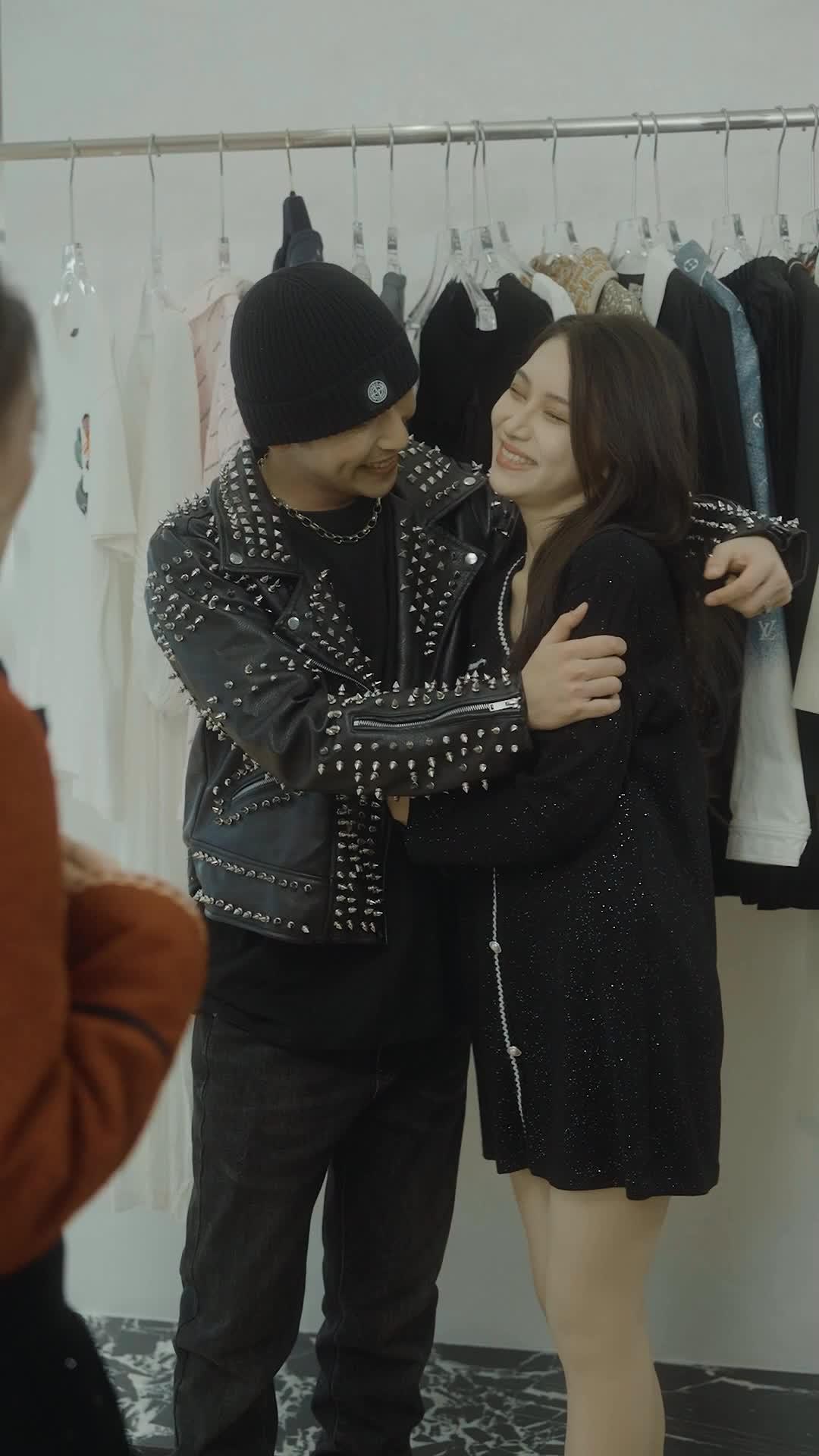 There’s a specific kind of tension that only exists in spaces designed for beauty—where every surface is polished, every garment hung with intention, and every interaction is supposed to be *curated*. That’s the world of *Another New Year's Eve*, and it’s precisely where the illusion shatters. We meet Lin Xiao first—not in motion, but in suspension. She stands in the center of the frame, hands clasped loosely in front of her, as if she’s been caught mid-thought. Her rust-red jacket is immaculate: the black velvet bow at her throat is symmetrical, the gold chain trim along the cuffs glints under the LED strips overhead. She’s dressed for a holiday gathering, for elegance, for being *seen*. But her eyes tell a different story. They dart—not nervously, but *strategically*. She’s scanning the room, calculating angles, exits, the distance between herself and the nearest shelf of handbags. She’s not afraid yet. She’s preparing. And that preparation is what makes what follows so devastating. Because when Chen Wei enters, draped in spikes and swagger, he doesn’t disrupt the scene—he *rewrites* it. His leather jacket isn’t just clothing; it’s armor, intimidation, a declaration of territorial dominance. He doesn’t walk into the boutique. He *invades* it. And Li Na, beside him, is his co-conspirator—not in action, but in implication. Her arms cross, her chin lifts, and she smiles—not at Lin Xiao, but *past* her, as if Lin Xiao is already irrelevant. That smile is the spark.