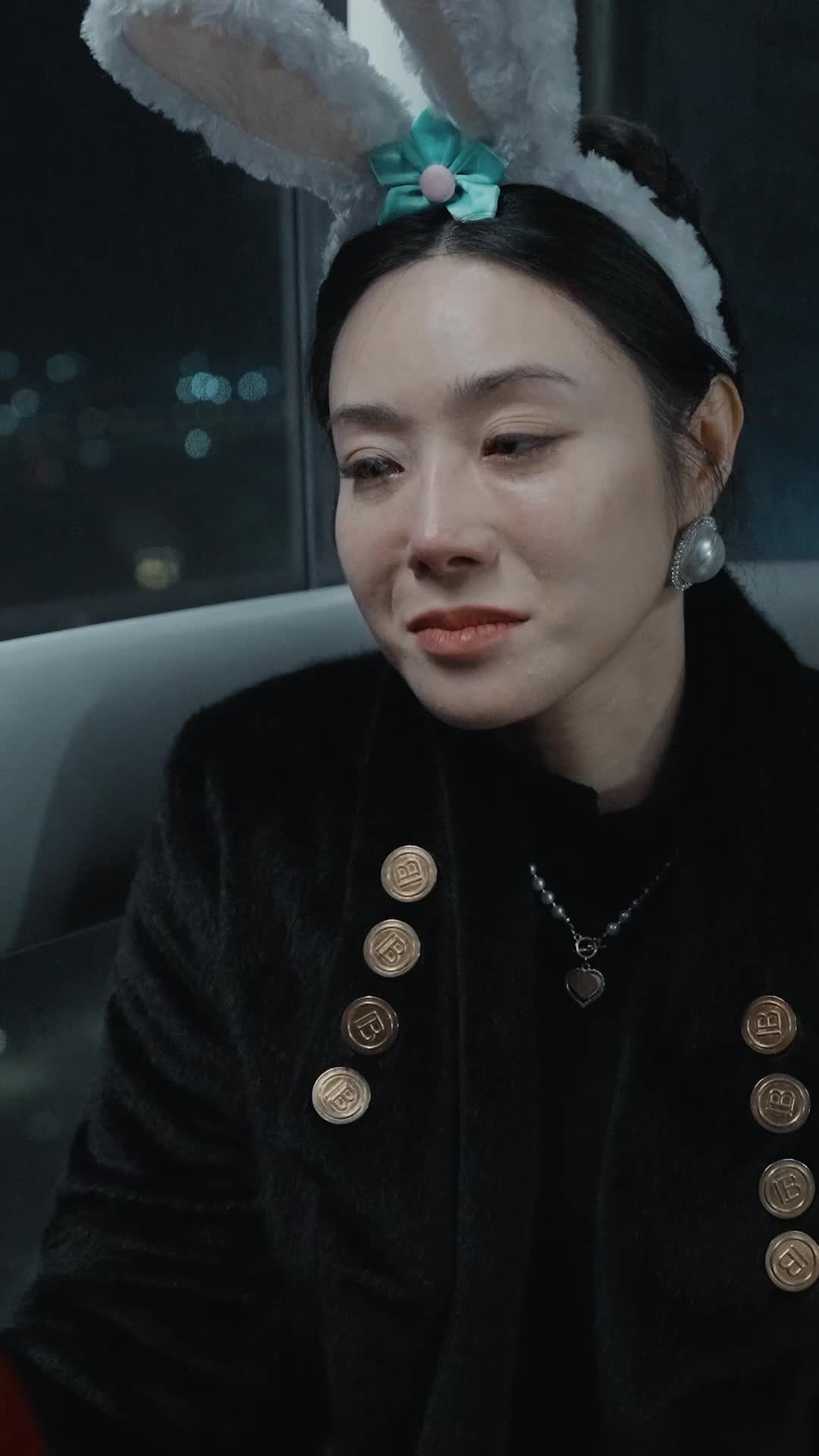 There’s a specific kind of tension that only exists in the backseat of a moving car at night—when the world outside blurs into streaks of gold and indigo, and the interior becomes a stage lit by ambient glow and desperation. That’s where we find Lin and Mei, two women bound not by blood or romance, but by something far more volatile: shared history, unspoken guilt, and the unbearable lightness of pretending everything’s fine. Lin, in her rust-red jacket with its delicate chain-trimmed pockets and oversized black bow, looks like she’s dressed for a party she never wanted to attend. Her hair is half-up, half-down, a visual metaphor for her state of mind: trying to hold it together while pieces keep escaping. And then there are the tears. Not the tidy, cinematic kind that trace perfect paths down porcelain cheeks—but the messy, snotty, hiccupping kind that distort your face and make you hate yourself for losing control. Yet Lin doesn’t hide. She lets them fall. She lets Mei see. And Mei—oh, Mei—wears those bunny ears like armor. Fluffy, absurd, deliberately childish, as if to say: *I refuse to take this seriously*. But her eyes tell another story. They soften. They narrow. They flicker with recognition—not of pain, but of *pattern*. She’s seen this before. She knows the script. The way Lin’s shoulders hunch when she speaks, the way her voice cracks on the third syllable of a sentence she’s rehearsed in her head all day—that’s not new. What’s new is the silence Mei chooses to fill with touch instead of words. A hand on the knee. A thumb brushing away a tear—not gently, but firmly, like she’s wiping smudge off a lens. As if Lin’s grief is a distortion to be corrected. Another New Year's Eve isn’t just a backdrop; it’s an active participant. The city lights outside aren’t decoration—they’re witnesses. Each passing streetlamp catches the wet sheen on Lin’s lashes, each turn of the car tilts Mei’s pearl earrings just so, catching the light like tiny, judging moons. And when Mei finally leans in, close enough that Lin can smell her vanilla-and-ink perfume, she doesn’t offer platitudes. She whispers something we don’t hear. But Lin’s reaction tells us everything: her breath hitches, her fingers curl into fists, and for a split second, she looks less like a victim and more like a conspirator. That’s the twist no one saw coming—not that Lin is hurting, but that Mei *wants* her to hurt. Or at least, wants her to *feel* it fully, without filters. Later, in the restroom—sterile, fluorescent, the kind of place where emotions go to die quietly—Lin confronts her reflection. Her face is streaked, her nose red, her dignity in tatters. She tries to wash it off. She scrubs. She splashes. But the stain remains—not on her skin, but in the set of her jaw, the tremor in her hands. And then Mei appears in the mirror behind her, not with pity, but with a quiet certainty. She doesn’t speak. She simply reaches out and adjusts Lin’s collar, straightening the bow that had slipped sideways during the breakdown. It’s a small gesture. A domestic act. And yet, it lands like a confession. Because in that moment, Lin realizes: Mei isn’t here to fix her. She’s here to remind her that she’s still *herself*, even when she’s falling apart. Another New Year's Eve thrives on these contradictions—the absurdity of bunny ears in a crisis, the intimacy of shared silence, the violence of kindness disguised as calm. Lin’s white crossbody bag, slung low on her hip, swings with each step she takes toward the exit, its gold clasp catching the light like a tiny beacon. Mei follows, hands tucked into her coat pockets, the golden buttons on her black velvet jacket gleaming like coins tossed into a well. They don’t speak as they walk down the hallway. They don’t need to. The air between them hums with everything that’s been said and everything that never will be. And when Lin finally turns to Mei, her eyes raw but clear, and mouths the words *thank you*, it’s not gratitude she’s expressing. It’s surrender. Acceptance. The quiet admission that some bonds don’t survive trauma—they evolve through it. Another New Year's Eve doesn’t end with resolution. It ends with presence. With two women walking side by side into the unknown, one still trembling, the other smiling faintly, her rabbit ears now slightly bent, as if even they’ve borne witness to too much truth. This isn’t a love story. It’s a survival story. And in the world of short-form drama, where every second counts, that’s the rarest, most devastating kind of hope.