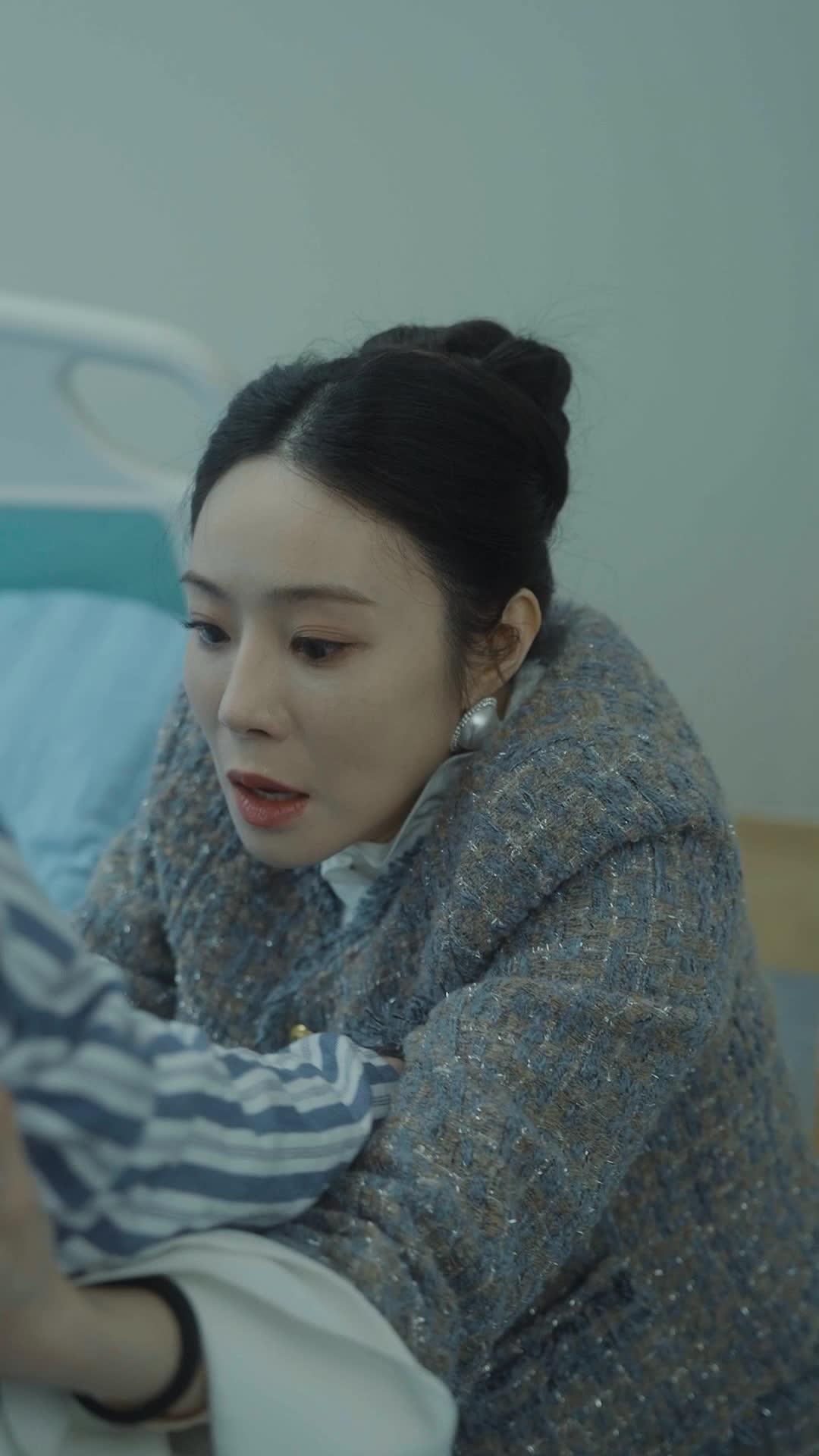 There’s a particular kind of dread that settles in your chest when you realize a scene isn’t about what’s happening—but about what’s been buried. In Another New Year's Eve, that dread arrives not with sirens or shouting, but with the slow, suffocating weight of two women locked in a hospital room, where the only sound louder than the heart monitor is the silence between them. Lin Xiao, in her blue-and-white striped pajamas, sits like a statue carved from exhaustion, one hand pressed to her throat as if trying to hold back a truth too dangerous to voice. Across from her, Mei Ling—elegant, poised, wearing a textured grey coat that whispers wealth and control—kneels on the cold linoleum, clutching Lin Xiao’s arm like a lifeline, her face a map of unraveling certainty. This isn’t a visit. It’s an interrogation disguised as compassion. And the room? It’s not just a hospital ward—it’s a confessional booth with fluorescent lighting and a bed instead of a kneeler.