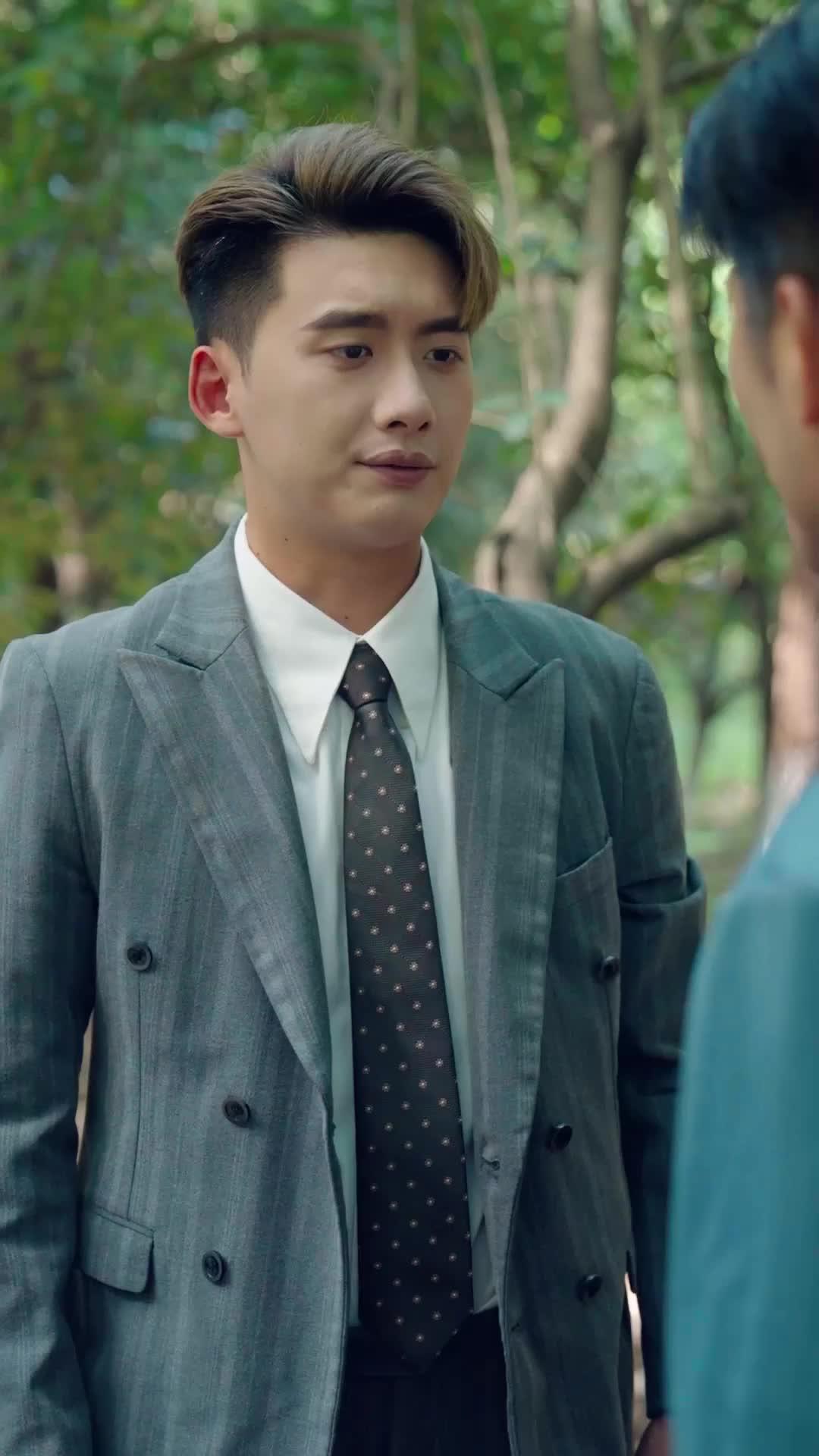 In the dappled light of a secluded woodland path, where fallen leaves crunch underfoot and ancient trees stand like silent witnesses, two men confront not just each other—but the ghosts they’ve carried for years. The younger man, Tang Wan, dressed in a sharply tailored grey double-breasted suit, his tie dotted with tiny stars like distant constellations, embodies polished restraint—yet his eyes betray a tremor beneath the surface. Opposite him stands Li Zheng, older, weathered, wearing a teal button-down that seems to absorb the forest’s melancholy green. His posture is firm, but his hands—when they finally reach out—tremble slightly as they settle on Tang Wan’s shoulders. This isn’t a casual reunion. It’s an excavation.