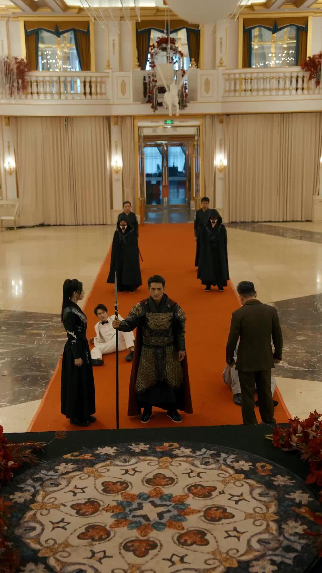 There’s a moment—just two seconds, maybe less—where Xia Zhi doesn’t move. His spear rests against the floor, tip embedded in the red carpet like a nail driven into fate. His eyes lock onto David Miller’s, and for that blink of time, the entire hall holds its breath. No music swells. No guard shifts. Even the chandelier above seems to pause mid-sway. This is the heart of *The Crimson Oath*: not the violence, not the reveals, but the unbearable weight of unspoken history. Because Xia Zhi isn’t angry. He’s weary. The kind of exhaustion that settles in the bones after carrying a truth too heavy for one man to bear. His armor—those intricate bronze plates, the snarling beast on his chest—isn’t decoration. It’s testimony. Each rivet, each curve, tells a story David tried to bury with fire and forged documents.