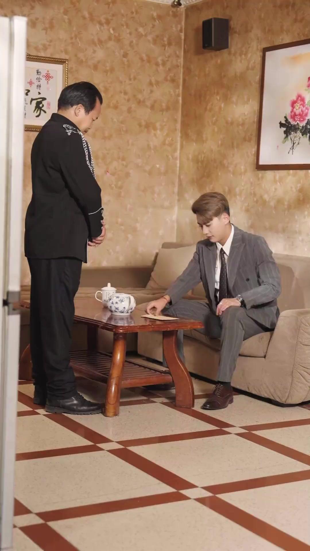 The room smells of aged wood, jasmine tea, and something older—regret, maybe, or unresolved grief. The floor tiles form a geometric lattice, red and cream, like a chessboard where no one has moved a piece in decades. Li Zeyu sits, immaculate in his grey suit, tie knotted with military precision, yet his fingers fumble with the envelope as if it’s radioactive. General Chen stands like a statue carved from duty, his black ceremonial coat gleaming under the soft overhead light, silver chains draped over his shoulders like medals of silence. This isn’t a business meeting. It’s a reckoning disguised as a tea session. And the catalyst? Three photographs. Not digital files, not screenshots—but physical prints, handled with reverence, examined like sacred texts. In an age of ephemeral pixels, these paper ghosts carry the weight of decades.