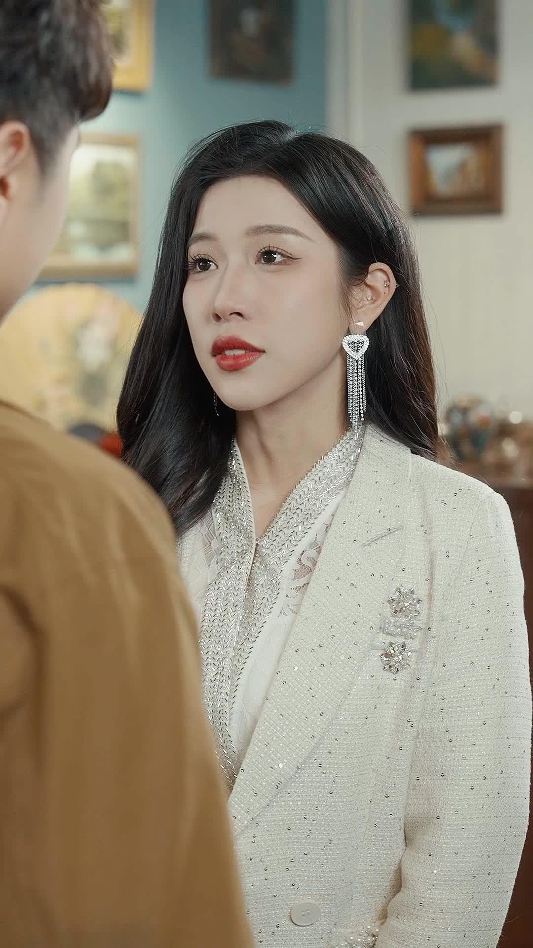 In the opening sequence of *Beauty and the Best*, we’re dropped straight into a high-tension dialogue between two characters whose visual contrast alone tells a story: Lin Xiao, dressed in a shimmering ivory tweed suit adorned with delicate crystal brooches and heart-shaped chandelier earrings, stands like a porcelain doll dipped in moonlight—elegant, composed, yet radiating quiet urgency. Opposite her is Chen Wei, clad in a rugged tan jacket over a black knit shirt, his posture relaxed but his eyes sharp, betraying a man who’s seen too much to be easily swayed. The setting—a curated antique shop filled with carved wooden cabinets, gilded frames, and faded oil paintings—feels less like a retail space and more like a stage for emotional archaeology. Every object behind them seems to whisper forgotten histories, as if the room itself is judging their exchange.
