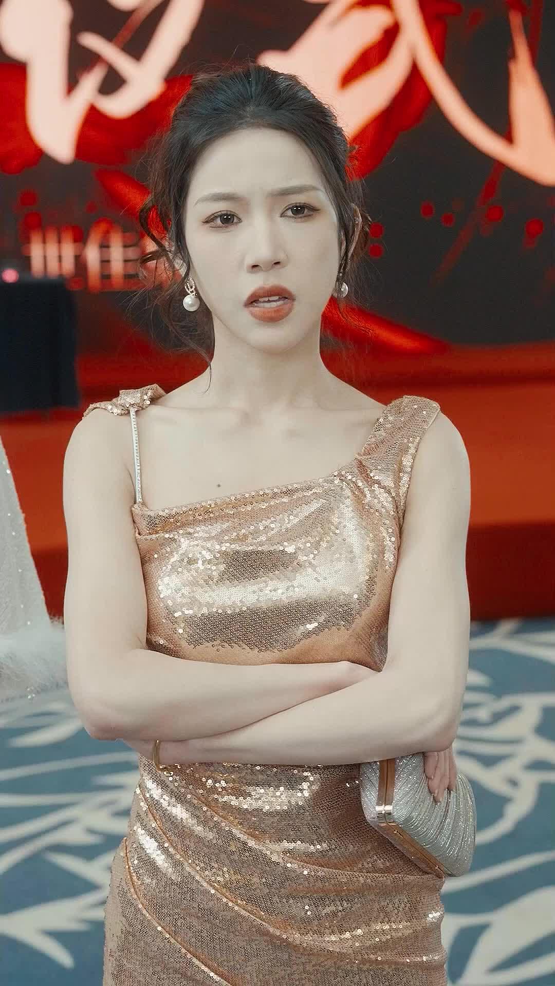 Let’s talk about the moment the floor stops being carpet and starts being a battlefield. In *Beauty and the Best*, the first ten seconds are a masterclass in visual irony: Lin Xiao, radiant in rose-gold sequins, stands like a statue carved from ambition, while behind her, the wall screams in scarlet kanji—characters that translate, loosely, to ‘Binding Pact’ or ‘Sealed Fate.’ The irony isn’t lost on her; her eyes flick left, then right, not scanning the crowd, but measuring exits. She’s not posing for cameras; she’s triangulating escape routes. That’s the genius of this short film—it never tells you the stakes. It makes you *feel* them in the tremor of a hand, the dilation of a pupil, the way Jian Yu’s denim jacket hangs slightly too loose on his frame, as if he shed something heavier before walking through those double doors. He doesn’t belong here. Not because he’s underdressed, but because his silence is louder than anyone else’s rhetoric. While Chen Hao gesticulates like a Shakespearean villain reborn in a modern tailoring house—his rust-red three-piece suit immaculate, his skull-patterned cravat a dare—the real drama unfolds in the micro-expressions. Watch Chen Hao’s right hand when he speaks: fingers curl inward, thumb pressing against the base of his palm, a gesture of containment. He’s not angry. He’s *restraining* anger. And when he turns to Jian Yu, his voice drops, his lips barely moving, yet Jian Yu flinches—not physically, but in the set of his shoulders, the slight recoil of his neck. That’s how you know the threat isn’t verbal. It’s ancestral. It’s written in the bones.