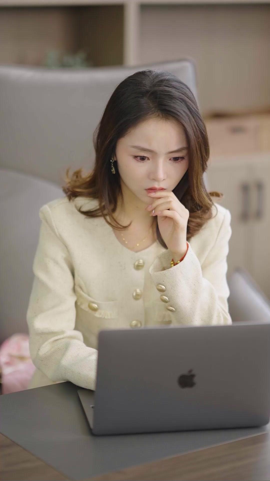 In a sleek, sun-drenched office where glass walls reflect ambition and silence speaks louder than words, Lin Xiao sits hunched over her MacBook—her fingers hovering, not typing, but trembling slightly. Her cream-colored tweed suit, adorned with gold buttons like tiny promises, contrasts sharply with the tension coiled in her posture. She’s not just working; she’s waiting. Waiting for something to break. And it does—when Zhou Yi enters, his black double-breasted suit immaculate, his wire-rimmed glasses catching the light like surveillance lenses. He doesn’t greet her. He *approaches*. That subtle shift in proximity—just two steps closer than professional etiquette allows—is where the real story begins.