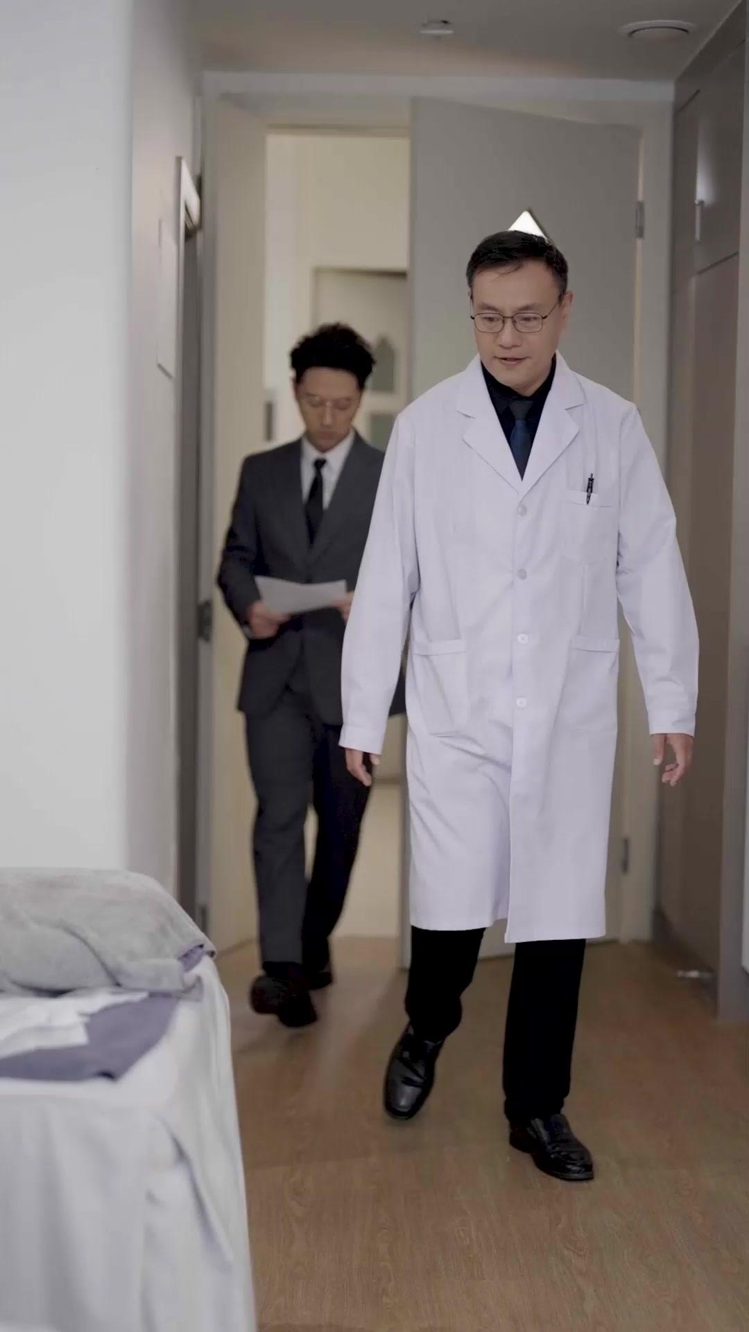 There’s a particular kind of tension that only exists in spaces where white coats and whispered confessions collide—a tension that doesn’t roar, but *settles*, like dust in sunbeams, obscuring the truth until you’re already standing in it. This sequence from *The Silent Diagnosis* doesn’t rely on music swells or sudden cuts; it thrives on the unbearable slowness of realization, the way a single sheet of paper can detonate a life. We meet Dr. Zhang first—not as a hero, not as a villain, but as a man who has seen too many versions of this story. His walk down the corridor is unhurried, deliberate, his gaze fixed ahead, yet his posture suggests a man bracing for impact. Behind him, Li Wei follows, clutching documents like talismans, his steps quick, nervous, his tie slightly askew—a detail that speaks volumes about the disarray beneath the surface. The contrast is immediate: one man moves with the weight of responsibility; the other, with the frantic energy of someone trying to outrun consequence.