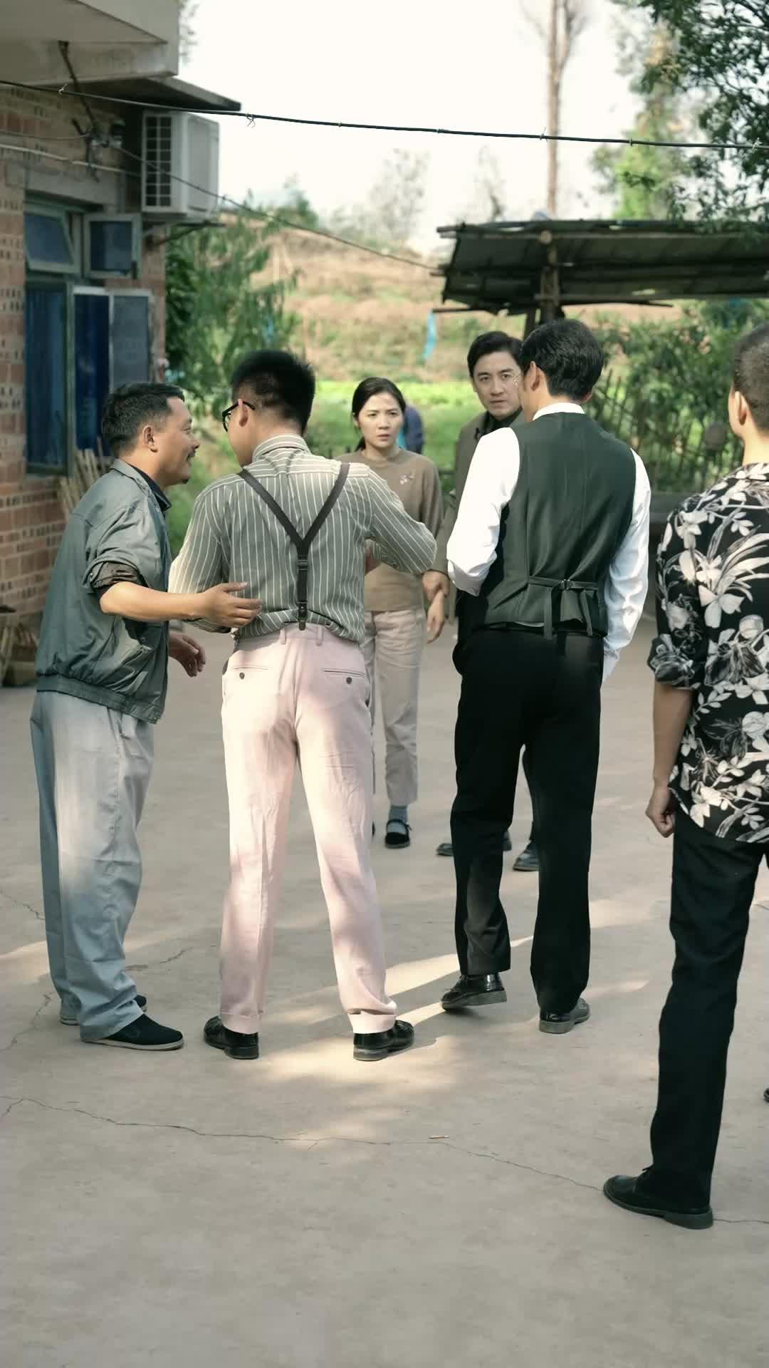 In the opening frames of *Billionaire Back in Slum*, the tension is already simmering—not with explosions or gunshots, but with a worn wooden chair and a man’s desperate scramble to wipe its surface. That single gesture, performed by the mustachioed man in the faded blue jacket—let’s call him Brother Liang—sets the tone for an entire sequence steeped in class anxiety, performative authority, and the fragile theater of respectability. He doesn’t just clean the chair; he *apologizes* to it, as if the object itself holds judgment over his worth. His fingers move fast, almost ritualistic, while his eyes dart upward, checking whether the seated figure—the impeccably dressed man in the black vest and white shirt, known only as Mr. Chen—has noticed. Mr. Chen, meanwhile, sits with one leg crossed over the other, a string of dark prayer beads resting loosely in his palm, his posture relaxed but his gaze sharp, unreadable. He isn’t smiling yet—but he’s close. There’s something deeply unsettling about how effortlessly he occupies space that clearly doesn’t belong to him: the cracked concrete courtyard, the brick wall scrawled with chalk graffiti, the air thick with the scent of damp earth and old laundry. This isn’t a mansion garden or a corporate lounge; it’s a rural compound where power usually flows from seniority, not tailoring. Yet here he is, holding court like a visiting dignitary, flanked by his loyal sidekick—a young man in suspenders and a red bowtie, whose nervous energy contrasts sharply with Mr. Chen’s calm. The sidekick keeps adjusting his trousers, glancing at his watch, whispering into Mr. Chen’s ear like a stagehand feeding lines. Their dynamic feels rehearsed, almost theatrical, as if they’ve practiced this entrance a dozen times before stepping into real life.