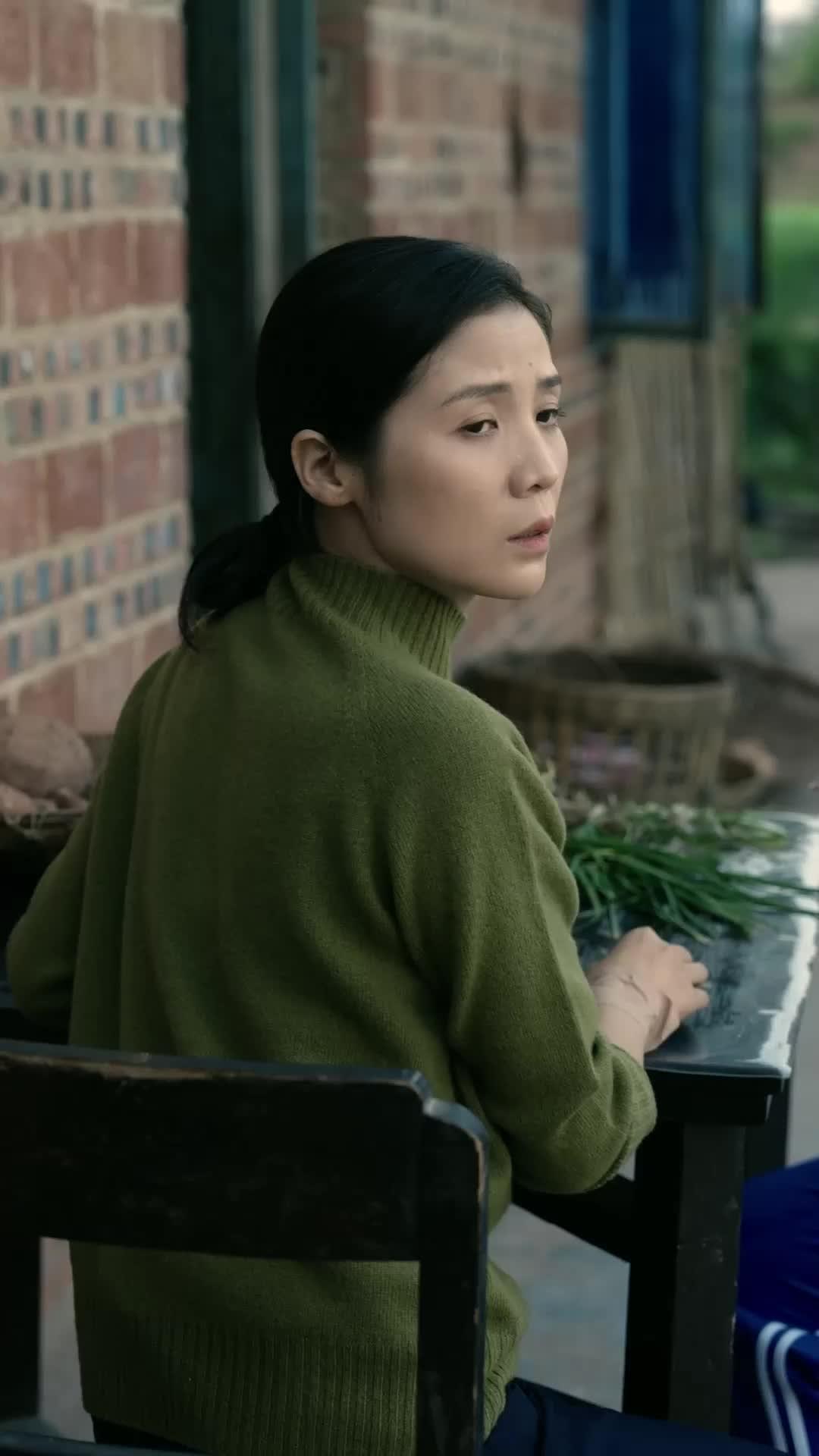 The opening frames of *Billionaire Back in Slum* don’t just set the scene—they detonate it. A woman in an olive-green turtleneck, her hair pulled back in a tight ponytail, sits at a rustic wooden table outside a brick house, hands resting on a bundle of green onions. Her posture is calm, almost meditative—until she turns. That single motion—a pivot of the head, eyes widening, lips parting slightly—tells us everything: something has ruptured the quiet rhythm of her day. She’s not startled by noise or movement; she’s startled by *recognition*. And then, the girl appears: long black hair in twin braids, wearing a blue-and-white tracksuit that screams schoolgirl innocence, yet her expression is anything but naive. It’s wary. Suspicious. Like she’s seen this moment coming in her dreams—and dreaded it.