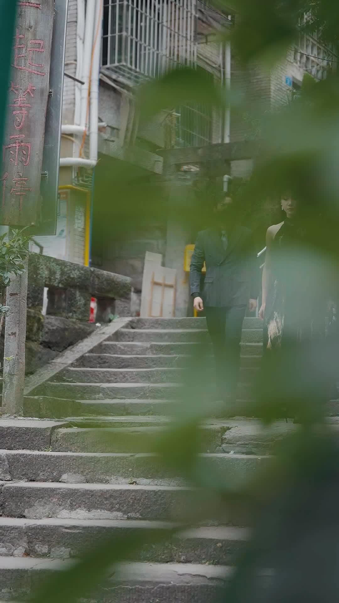 The final wide shot pulls back, framing them small against the steep climb of the stairs, the faded red sign beside them reading ‘Yiqi Deng Yu Ting’—‘Wait Together in the Rain Pavilion.’ Irony hangs thick in the air. They’re not waiting. They’re leaving. And the rain? It never came. Just like the promises they made under clearer skies. *Bound by Love* isn’t a romance—it’s an autopsy of one, performed with surgical elegance on a staircase no one else notices. Every detail—the peeling paint on the railing, the single red rose tucked into the signpost (wilted, of course), the way Chen Xiao’s heel catches on a cracked step as she turns away—screams intentionality. This isn’t accidental realism; it’s curated heartbreak. And that’s why *Bound by Love* lingers long after the screen fades: because we’ve all stood on that staircase, holding someone’s wrist, knowing the next step forward is also the first step apart. Li Wei walks away first, but it’s Chen Xiao who carries the silence home. And somewhere, in the backseat of a moving car, another version of her watches the world blur past—still wearing the same earrings, still breathing, still learning how to unlove without collapsing. That’s the real tragedy of *Bound by Love*: love doesn’t always end with shouting. Sometimes, it ends with a whisper, a handshake, and the quiet click of a car door closing.