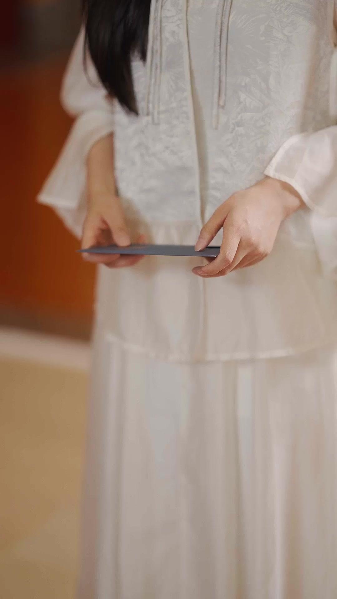 Lin Xiao enters the gala not with fanfare, but with the quiet certainty of someone who knows she’s walking into a story already written—she just hasn’t been handed her lines yet. Her outfit is understated perfection: ivory brocade, bell sleeves trimmed with delicate crystal fringe, a high mandarin collar that frames her face like a portrait in a museum. She carries nothing but a navy-blue envelope, its edges crisp, its weight disproportionate to its size. The camera follows her hands—not her face—as she walks across the parquet floor, each step measured, deliberate. The guests part instinctively, not out of deference, but out of recognition. They know this walk. They’ve seen it before—in whispered rumors, in late-night conversations over lukewarm tea, in the way Shen Yiran’s posture stiffens whenever Lin Xiao’s name is mentioned in passing.