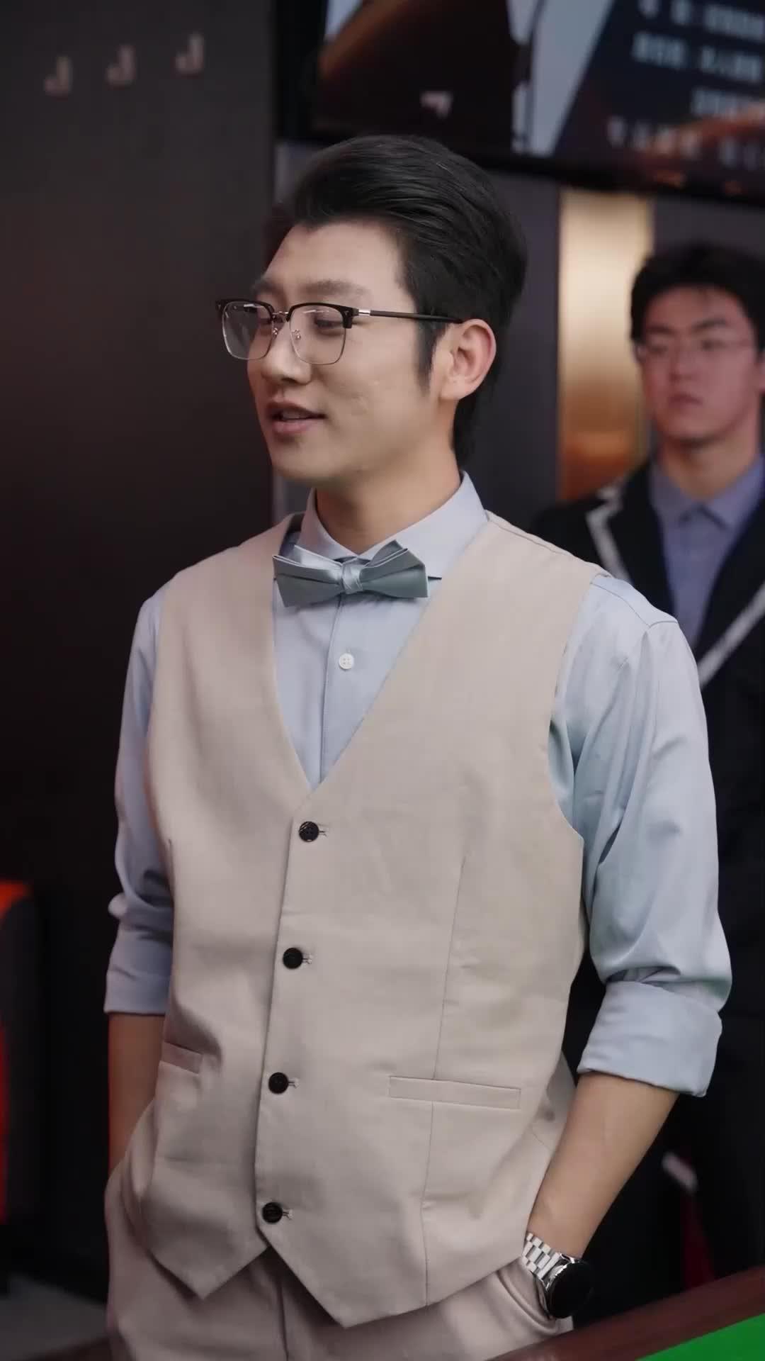 Contrast him with Zhang Zeyu—the man in the beige vest, silver bowtie, and wire-rimmed glasses that catch the light like surveillance lenses. He’s polished, precise, the kind of player who measures angles with a protractor in his mind. His posture is upright, his movements economical, his silence louder than anyone else’s chatter. Yet beneath that composure lies something brittle. In one sequence, after Chen Lin executes a near-impossible bank shot off three rails—sending the black ball skimming past the green like a comet brushing a planet—Zhang Zeyu’s fingers tighten around his cue. Not enough to crack it, but enough for the viewer to notice the tremor in his knuckles. His watch—a sleek smartwatch with a dark face—flashes a notification he ignores, but his jaw tenses. That’s when you realize: this isn’t about points. It’s about legacy. Zhang Zeyu isn’t just playing against Chen Lin; he’s playing against the ghost of his own expectations, the weight of a reputation built on control, now threatened by chaos incarnate in flannel and candy. The scoreboard above them reads ‘147’—a perfect break, a mythical number in snooker lore—and yet neither man looks at it. They’re locked in a different kind of scorekeeping: who blinks first, who cracks under the gaze of the spectators, who dares to believe they can rewrite the rules mid-game.