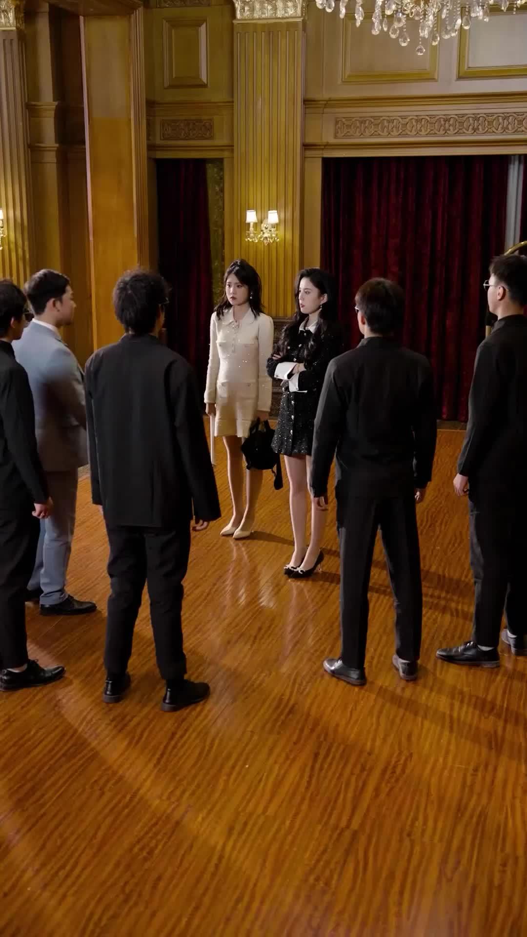 In the opulent hall of what appears to be a high-society gala or corporate summit—polished hardwood floors gleaming under the soft glow of crystal chandeliers and gilded wall sconces—the tension is not merely palpable; it’s *textured*, like the tweed of the black coat worn by Lin Xiao, whose arms remain tightly crossed, fingers gripping the white silk cuffs as if they were lifelines. Beside her stands Mei Ling, in an ivory ensemble studded with delicate pearls and rhinestones, clutching a folded document like a shield. Neither speaks for nearly thirty seconds in the opening sequence, yet their silence screams louder than any dialogue could. This is not passive waiting—it’s strategic stillness, the kind that precedes detonation. The men surrounding them—six in total, all dressed in monochrome suits save for one man in a pale blue three-piece suit with a paisley tie, identified only as Zhou Wei—form a semicircle not of protection, but of containment. Their posture is relaxed on the surface, hands in pockets, shoulders loose—but their eyes? They flicker between Lin Xiao and Zhou Wei like radar sweeps, calculating angles, assessing threat vectors. Zhou Wei, notably, never breaks eye contact with Lin Xiao, even when she looks away. His lips part slightly—not in speech, but in anticipation. A micro-expression, barely there, but it tells us everything: he knows something she doesn’t. Or perhaps he *wants* her to think he does. That’s the genius of Curves of Destiny: it weaponizes ambiguity. Every glance, every shift in weight, every subtle tilt of the head functions as narrative punctuation. When Lin Xiao finally exhales—her nostrils flaring just once—and lifts her chin, the camera lingers on her earrings: diamond teardrops, catching light like warning signals. She doesn’t speak first. Instead, she lets her gaze drop to Zhou Wei’s belt buckle—a custom piece, engraved with a serpent coiled around a key. A symbol? A signature? The audience is left to wonder, while Mei Ling’s knuckles whiten around her papers. The red velvet curtain behind them isn’t just decor; it’s a visual metaphor for the curtain about to rise on a confrontation no one saw coming. And then—just as the silence threatens to suffocate—the man in sunglasses (later revealed as Feng Tao, Zhou Wei’s enforcer) shifts his stance. Not much. Just a half-step forward. But in this world, where space equals power, that half-step is a declaration of war. The audience feels it in their sternum before the first punch lands. What follows isn’t chaos—it’s choreographed collapse. One man in black stumbles backward, not from force, but from misjudgment; another tries to intervene and gets caught in a cross-body takedown so clean it looks rehearsed, yet the gasp from the seated guests in the foreground confirms its authenticity. The camera doesn’t cut away. It *follows* the fall—slow, brutal, intimate—as if inviting us to count the floorboards beneath the fallen man’s head. This is where Curves of Destiny diverges from typical melodrama: violence here isn’t cathartic; it’s diagnostic. Each blow reveals character. When the hoodie-clad intruder—newly introduced, name unknown but presence undeniable—steps into the fray, he doesn’t fight with rage. He fights with precision. His movements are economical, almost bored, as if he’s seen this script before. He disarms two men with wrist locks that look less like martial arts and more like *correction*. And when he finally faces Zhou Wei, there’s no shouting, no grand monologue. Just a quiet, almost amused smile—and a single word, whispered so low the mic barely catches it: ‘Again?’ That one syllable carries the weight of past failures, unresolved debts, and a cycle neither man seems willing to break. Meanwhile, Lin Xiao doesn’t flinch. She watches the brawl unfold like a chess master observing a pawn sacrifice. Her expression remains unreadable—not because she’s indifferent, but because she’s already three moves ahead. The white clutch in her hand? It’s not empty. A faint bulge near the clasp suggests a compact device—perhaps a recorder, perhaps something sharper. The show loves these details: the way Mei Ling’s heel catches on a seam in the floorboard as she steps back, the way Zhou Wei’s cufflink slips loose during the scuffle, the way the chandelier above them sways ever so slightly, casting fractured light across the scene like broken promises. These aren’t accidents. They’re narrative brushstrokes. Curves of Destiny understands that in elite circles, power isn’t seized—it’s *performed*. And performance, like fashion, is always seasonal. Today’s season? Betrayal. Tomorrow’s? Revenge. The final shot—after the dust settles, after the fallen men are helped up with practiced indifference—lingers on Lin Xiao’s face as she turns toward the exit. Her lips part. For a heartbeat, we think she’ll speak. Then she closes them. Walks away. No fanfare. No resolution. Just the echo of footsteps on wood, and the lingering scent of bergamot and gunpowder. That’s the real twist: the most dangerous characters don’t raise their voices. They let the silence do the talking. And in Curves of Destiny, silence has teeth.