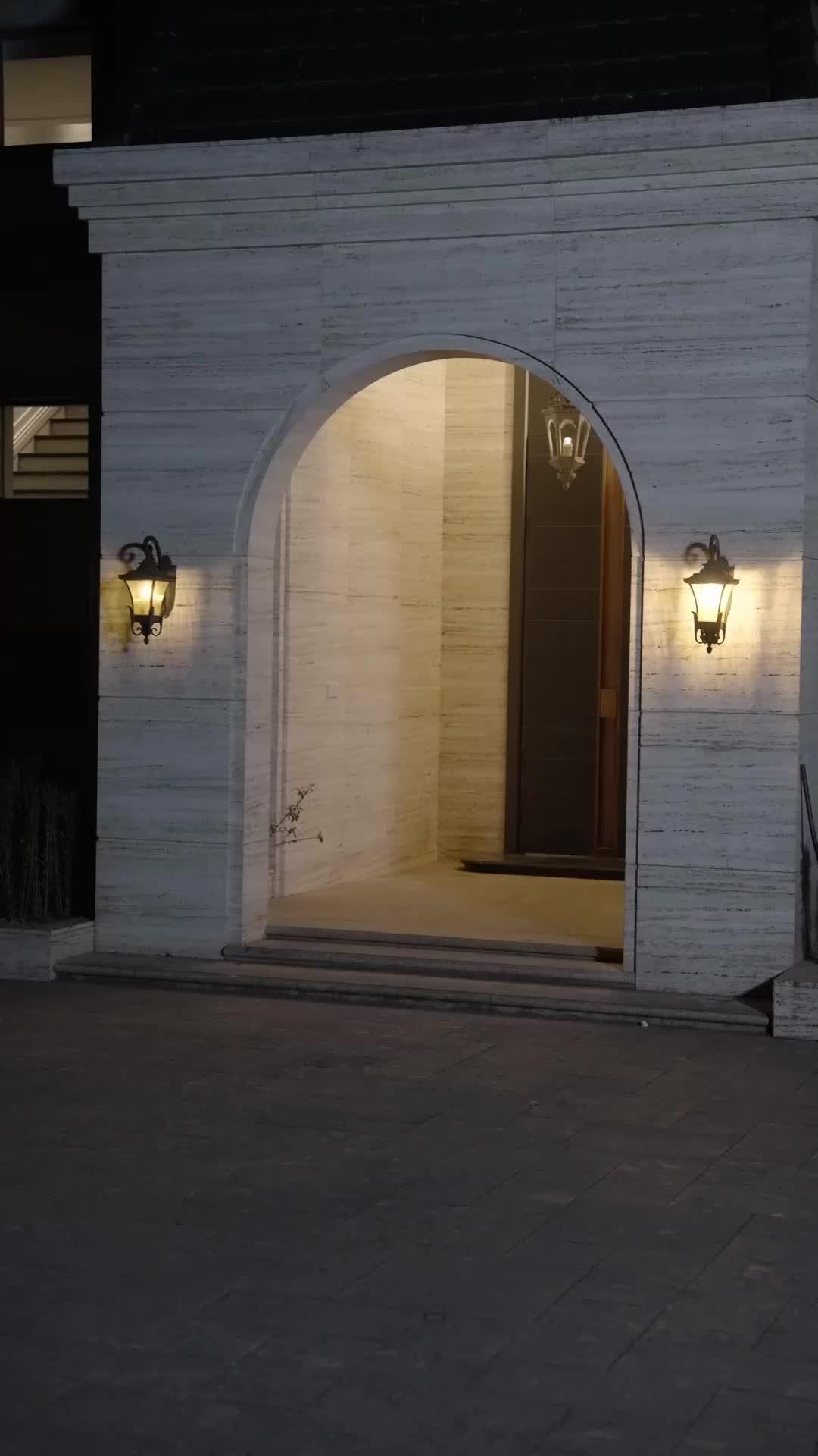 The opening shot of *Curves of Destiny* lingers on a grand arched entrance—white travertine stone, flanked by two ornate sconces casting warm halos in the night. It’s not just architecture; it’s a threshold. A psychological border between public performance and private reckoning. When the black Mercedes glides into frame, its polished surface reflecting the lamplight like liquid obsidian, we already know this isn’t a casual arrival. This is a ritual. The car stops precisely, wheels aligned with the curb—not too close, not too far. A detail that speaks volumes about control, about precision, about someone who has rehearsed this moment before. Inside, we glimpse a driver in a beige shirt, hands steady on the wheel, eyes forward. No glance toward the passenger. That silence is louder than any dialogue.