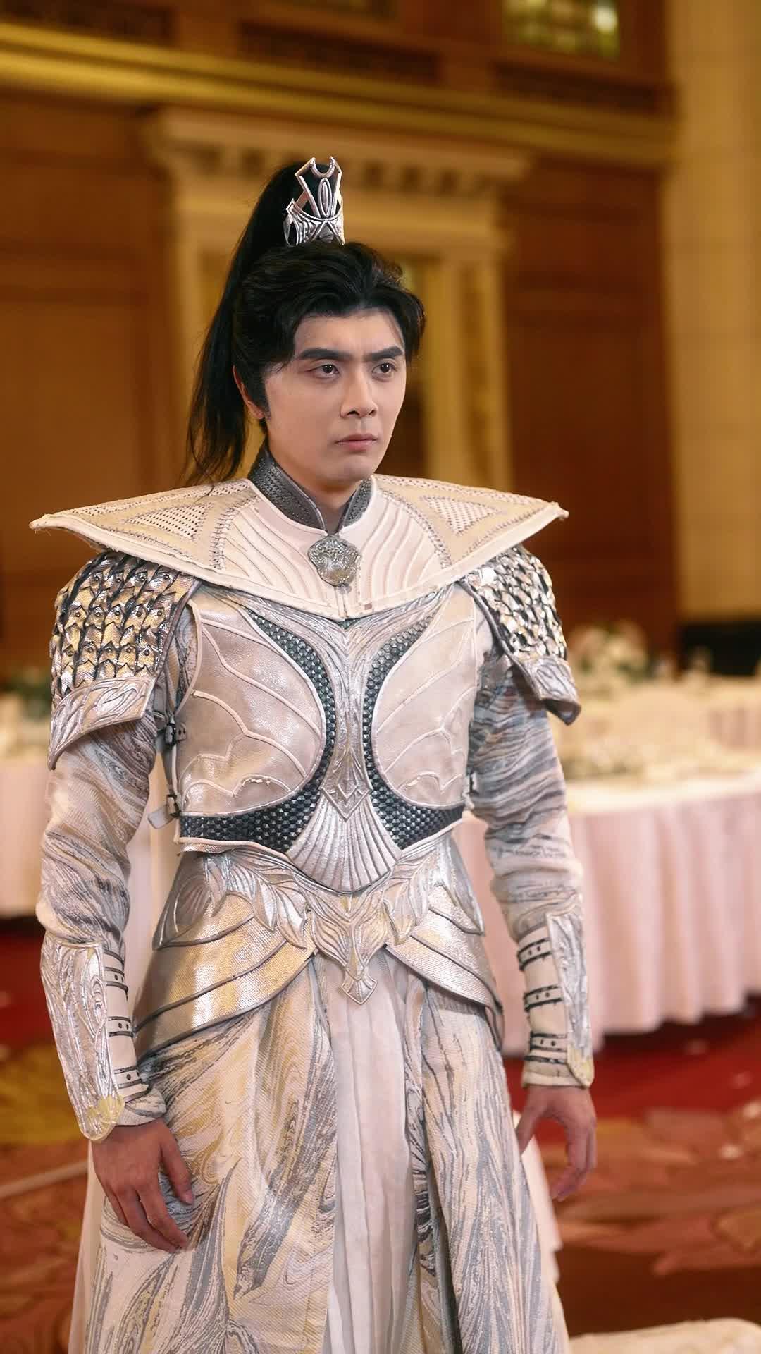 What makes Delivery Hero: Rise of the Loong so unnervingly compelling is how it weaponizes contrast. The banquet hall—gilded ceiling, crystal chandeliers, tables set for celebration—isn’t backdrop; it’s irony incarnate. These aren’t warriors clashing in a wasteland; they’re gods arguing in a ballroom, where spilled wine stains the carpet like blood, and rose petals scatter like fallen stars. The red carpet underfoot isn’t just decor; it’s a runway for ruin. And the costumes? Oh, the costumes. Ling Feng’s armor isn’t armor—it’s architecture. Every ridge, every rivet, every etched pattern speaks of lineage, of burden, of a legacy heavier than steel. Xiao Yue’s corseted breastplate is both shield and cage; the feathers at her waist flutter when she breathes, fragile against the rigidity of war. Mo Ye’s outfit, by contrast, is deceptively simple: black trousers with a tassel that sways like a pendulum, counting seconds until collapse. His bamboo motif isn’t decoration—it’s a dare. *Can you bend without breaking? Can you stand upright when the ground is lies?*