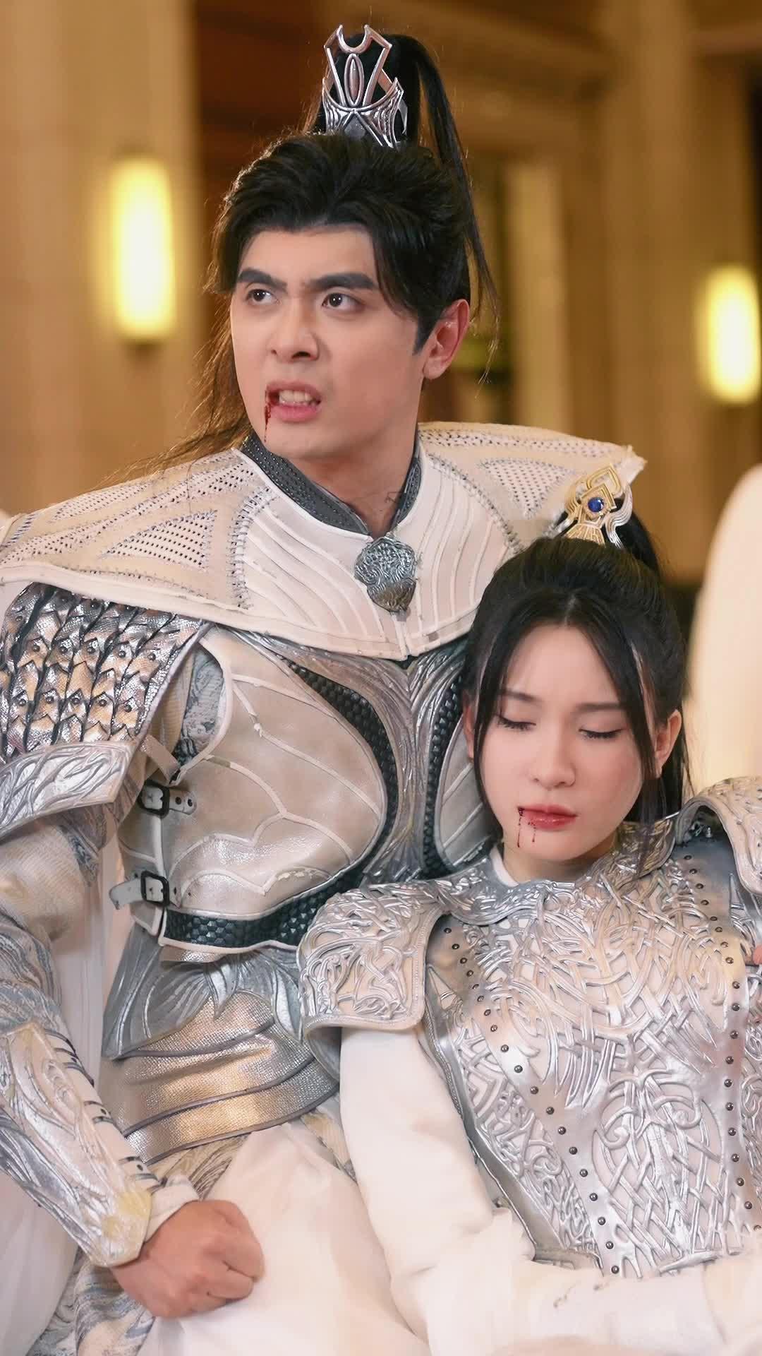 Let’s talk about what just unfolded in that opulent banquet hall—because if you blinked, you missed a full mythological crisis. Delivery Hero: Rise of the Loong isn’t just another fantasy drama; it’s a high-stakes emotional rollercoaster wrapped in silver armor and chandelier-lit grandeur. The opening shot alone—Xiao Yan cradling Ling Dong, both bleeding from the mouth, eyes wide with shock—sets the tone: this isn’t a battle won by swords alone. It’s a war fought in glances, in trembling hands, in the way Xiao Yan’s fingers tighten around Ling Dong’s arm like he’s afraid she’ll vanish if he loosens his grip even slightly. Their costumes? Impeccable. Silver filigree armor, layered with translucent white fabric that catches the light like moonlight on water—yet every detail screams exhaustion, trauma, sacrifice. That blood trickling from Ling Dong’s lips isn’t just makeup; it’s narrative punctuation. She doesn’t scream. She doesn’t collapse. She looks up at Xiao Yan with quiet devastation, as if her entire world has cracked open but she’s still trying to hold the pieces together for him. And Xiao Yan—he’s not crying. He’s *processing*. His jaw is set, his breath shallow, his gaze darting between her face and something off-screen that we don’t yet see. That hesitation? That’s the heart of Delivery Hero: Rise of the Loong. It’s not about who’s stronger—it’s about who’s willing to break first.