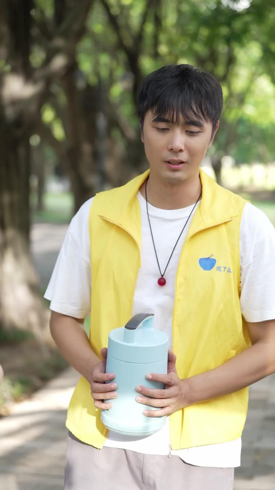 To understand the weight of that drop, we must revisit what came before. Lin Jie, in his yellow vest—emblazoned with the logo of the delivery platform ‘Chileme’ (‘Have you eaten?’)—approaches Xiao Yu with the thermos like a priest offering communion. His demeanor is gentle, almost reverent. He’s not just delivering food; he’s delivering continuity. For weeks—or months—he’s been the silent thread connecting her to a routine she’s trying to abandon. The thermos itself is worn: scuffed paint, a faint stain near the base, the handle slightly loose. These aren’t flaws; they’re signatures. They tell us this container has traveled many miles, carried many meals, survived many hands. It’s not disposable. And yet, Xiao Yu treats it as if it is.