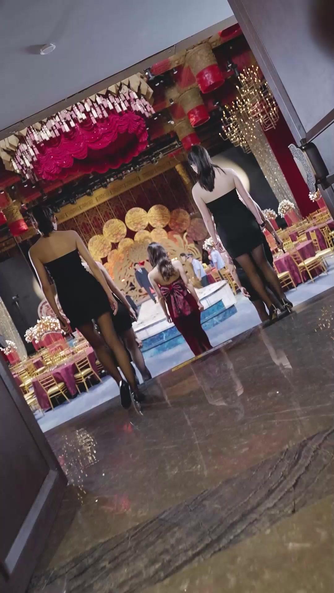 The woman in the rose-embroidered crimson gown—Xiao Man—is the true architect of this quiet storm. Her entrance down the floral-patterned runway is deliberate, unhurried, each step calibrated to draw eyes away from the groom’s nervous stance at the altar. She does not smile. Her lips remain parted just enough to suggest surprise, but her eyes—wide, dark, unblinking—betray nothing. They are mirrors reflecting not emotion, but calculation. Her pearl necklace, heavy and ornate, glints under the lights like a collar of judgment. Her earrings, star-shaped and dangling, catch the light with every subtle tilt of her head—a choreography of menace disguised as elegance. She watches Li Wei kneel, and for three full seconds, she does not move. Then, her gaze shifts—not to him, but past him, toward the man in the tan double-breasted suit seated at Table Seven: Chen Hao. He sits with one hand resting on a red gift box, the other loosely clasped over his knee, his expression unreadable, almost bored. Yet his fingers twitch when Xiao Man’s eyes land on him. A micro-expression, gone in a blink—but it’s enough. Divine Dragon thrives on these micro-expressions, these silences that speak volumes. Chen Hao is not a guest. He is a witness. Or perhaps, the author.