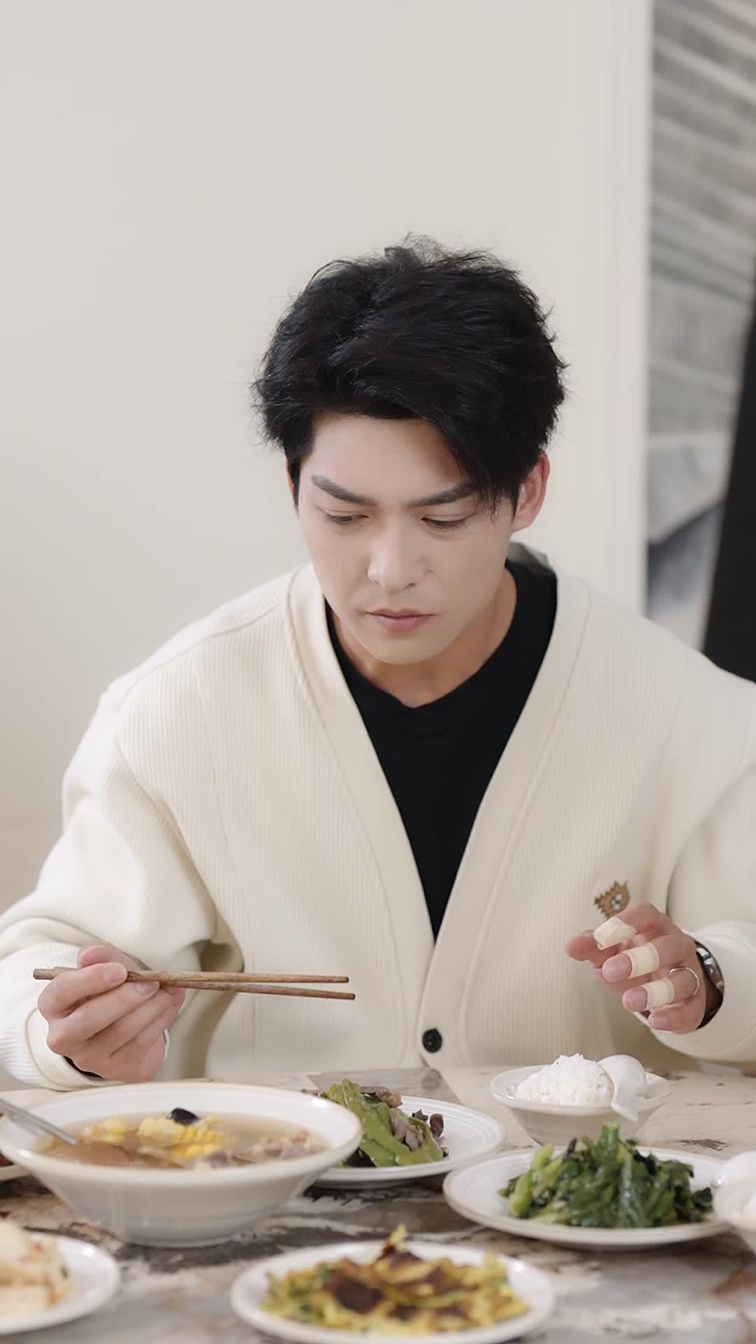 In the opening frames of *Divorced Diva’s Glorious Encore*, we are dropped into a scene that feels less like a dinner and more like a tribunal—elegant, restrained, yet vibrating with unspoken tension. Lin Zhi, dressed in a cream ribbed cardigan over a black tee, sits at the head of a marble island, chopsticks poised mid-air, as if frozen between bite and confession. His expression is not one of hunger, but of calculation—each movement deliberate, each glance measured. Across from him, Shen Yanyu, the titular Divorced Diva, wears her signature ivory tweed jacket with pearl-embellished buttons and a bow-tied blouse, an outfit that screams ‘I’ve rebuilt myself, and I’m not apologizing for it.’ Her earrings—long, dangling strands of pearls—catch the light every time she tilts her head, a subtle reminder that even in silence, she commands attention.