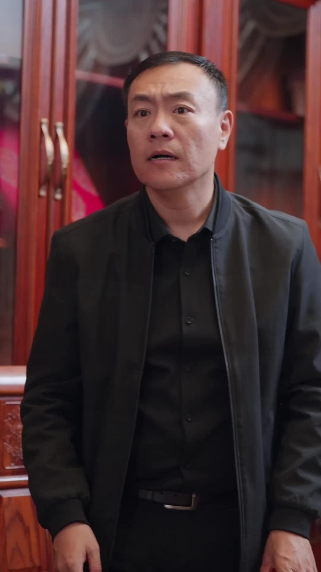 In the quiet tension of a traditional Chinese study—rich with lacquered wood, glass-fronted cabinets, and the faint scent of aged paper—two figures orbit each other like celestial bodies caught in an unspoken gravitational pull. Li Wei, dressed in monochrome severity—a black bomber jacket over a buttoned shirt, belt cinched tight—sits rigidly behind a polished desk, his posture betraying both authority and unease. His hands rest on the surface, fingers occasionally tapping or gripping the edge as if bracing for impact. Across from him stands Xiao Lin, her floral blouse tied at the waist, denim jeans grounding her in modernity, yet her stance is deferential, almost apologetic. Her large olive-green earrings sway subtly with each tilt of her head, a small rebellion against the stillness that surrounds them. This isn’t just a conversation; it’s a ritual of reckoning.