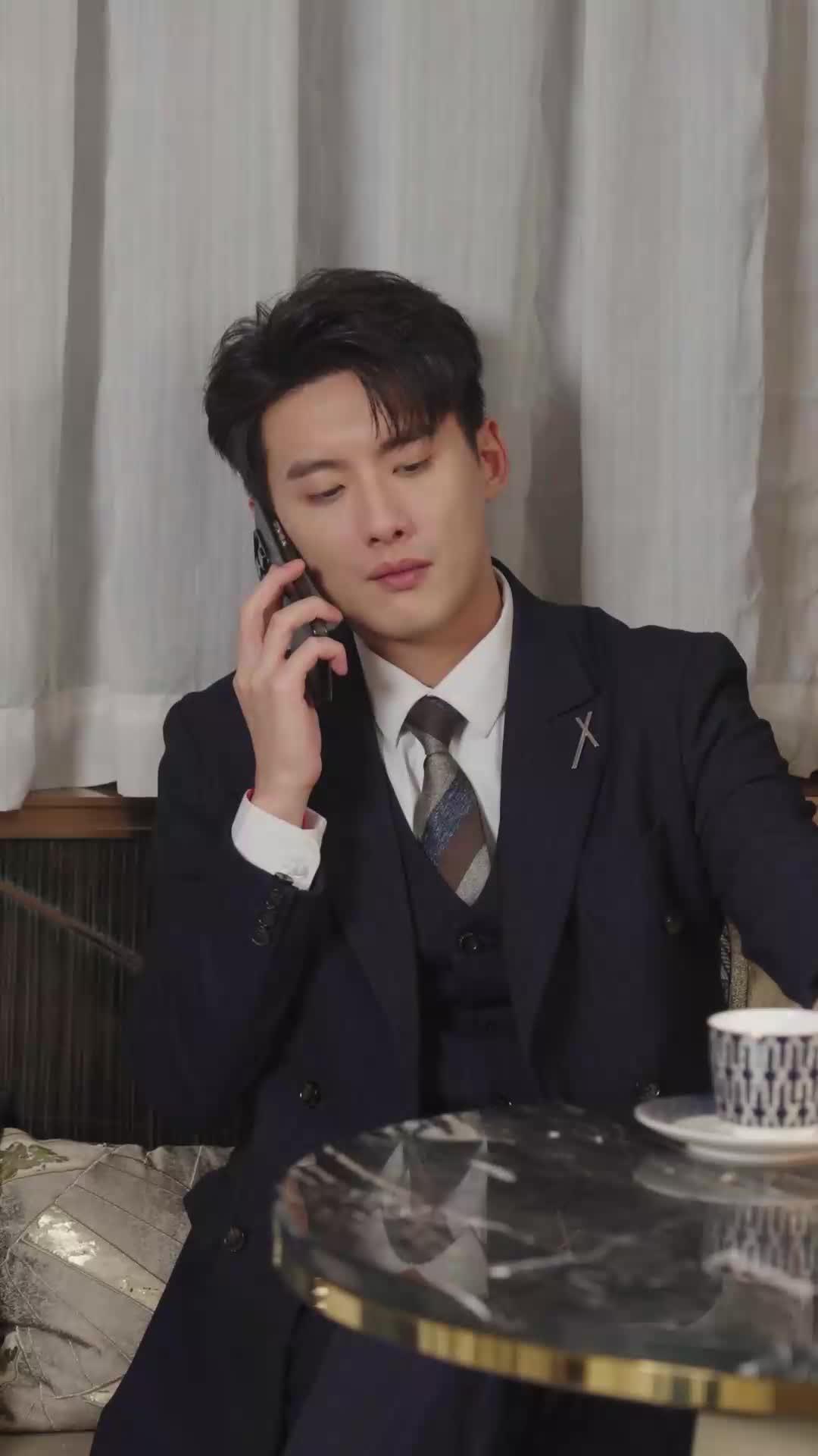 Let’s talk about that opening scene—Liang Chen, impeccably dressed in a navy three-piece suit with a silver cross pin, sitting in what looks like a high-end lounge, marble table gleaming under soft ambient light. He’s on the phone, calm, composed, almost too polished. A patterned teacup sits beside him, untouched. But watch his eyes—they flicker. Not panic, not anger, but something quieter: calculation. He listens, nods once, then lifts the cup—not to drink, but to rotate it slowly, as if weighing options. That subtle gesture tells us everything: this isn’t just a call; it’s a pivot point. The way he lowers the phone at 00:26, exhales through his nose, and stands abruptly—no words, no slam, just motion—suggests he’s just received intel that rewires his entire evening. And then… cut to black. No transition. Just silence. That’s where Falling for the Boss earns its first real gasp.