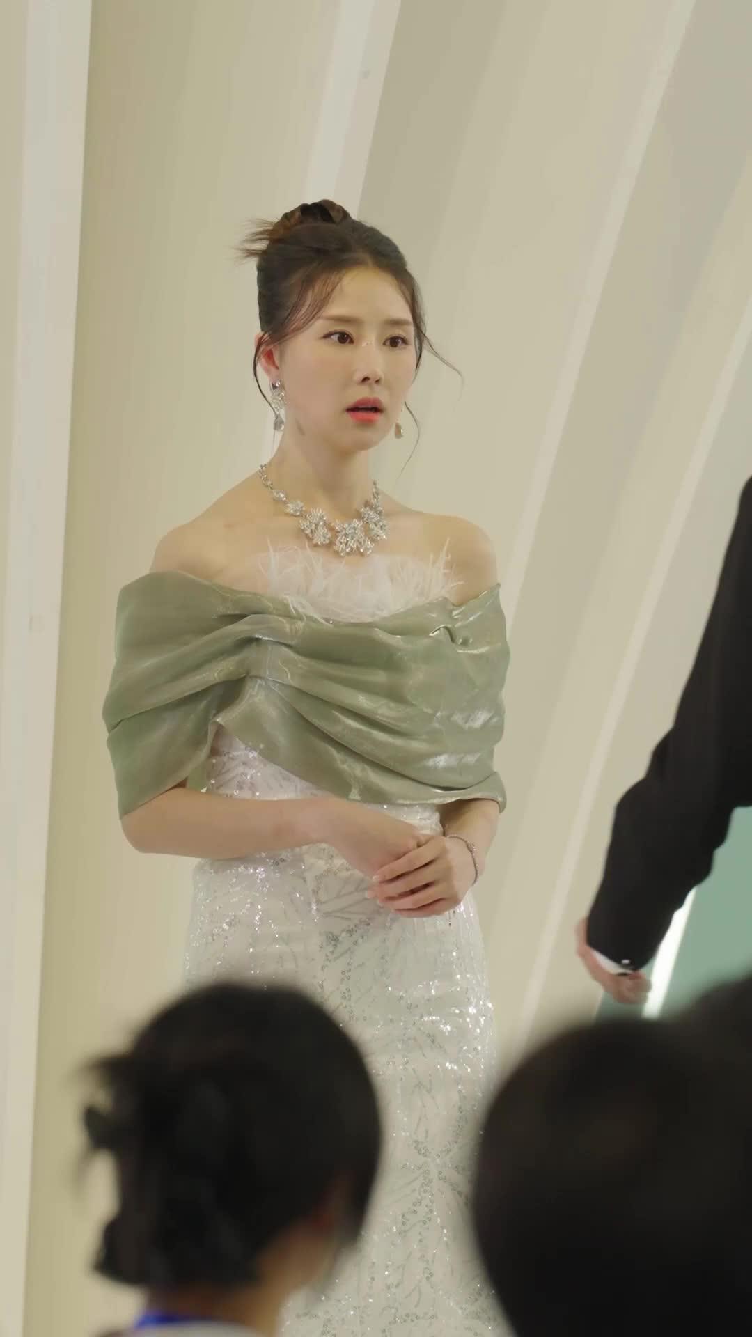In the opening sequence of *Falling for the Boss*, the camera lingers on Lin Xiao’s face—not with reverence, but with quiet tension. She stands center stage in a gown that glimmers like liquid moonlight, its off-shoulder drape of sage-green satin folded into an elegant knot across her chest, framing a cascade of white feathers and a diamond necklace that catches every spotlight like a constellation pinned to her collarbone. Her hair is swept up in a loose chignon, strands escaping like whispered secrets. She doesn’t smile. Not yet. Her eyes—wide, dark, unblinking—track the man approaching her: Chen Yi, impeccably dressed in a black tuxedo with velvet lapels that gleam under the soft ambient glow of the venue. He holds the award—a crescent-shaped crystal plaque mounted on a gold arc, inscribed with ‘ST Fashion Week Best Design Award 2023’ in both English and Chinese characters. The moment should be triumphant. Instead, it feels like the calm before a storm.