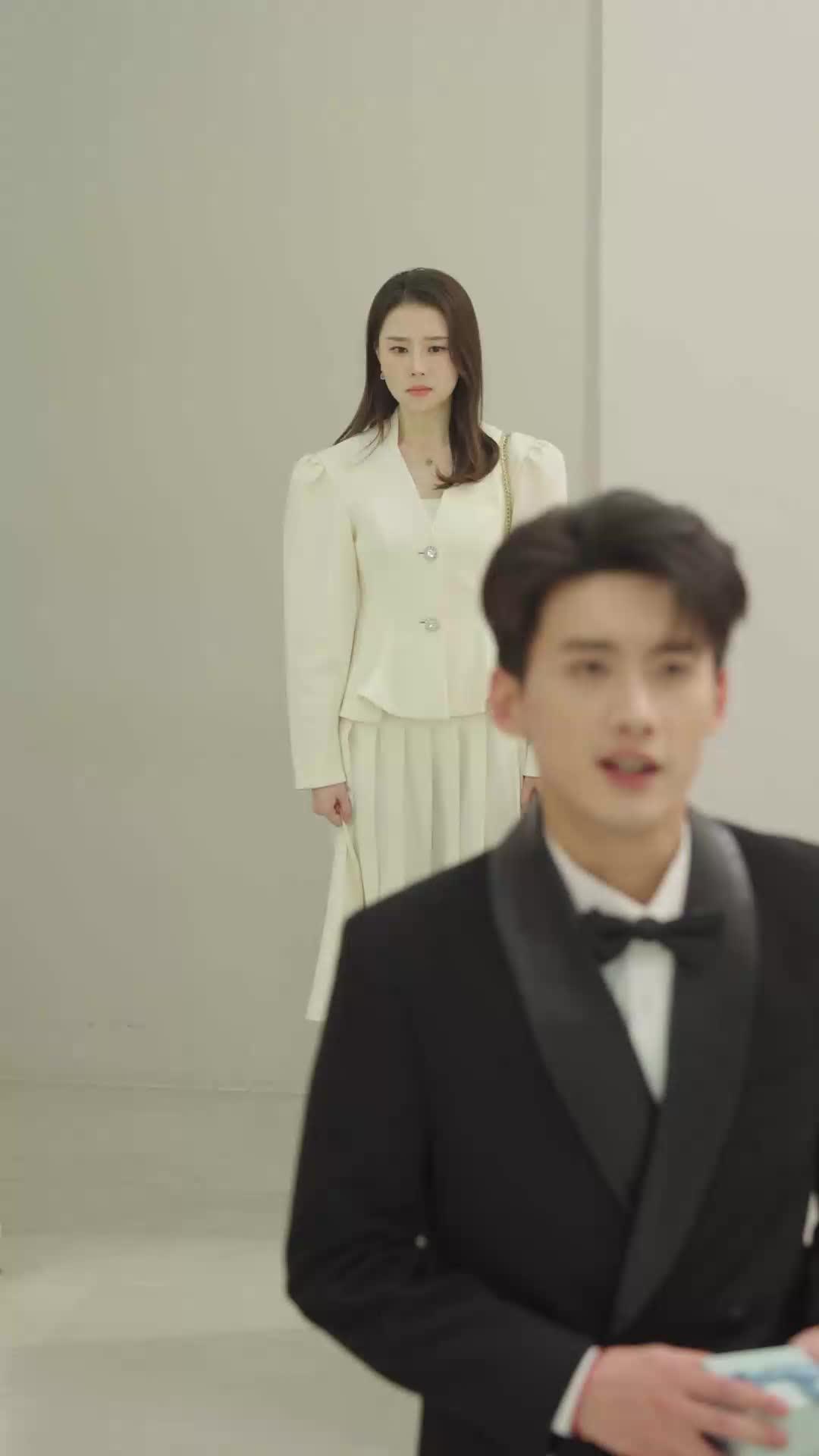 In the pristine, almost clinical white corridors of Auring’ Bridal—a boutique that promises fairy-tale endings—the air hums with unspoken tension. What begins as a romantic tableau quickly unravels into something far more human, messy, and painfully real. The man in the black tuxedo—let’s call him Lin Jian—is not just any groom-to-be; he’s the kind of man who rehearses gestures in mirrors, who holds a Tiffany-blue box like it’s a sacred relic, who kneels with practiced grace before the woman he believes is his future. But this isn’t a wedding day. It’s a dress fitting. And the woman in the ivory suit watching from the hallway—Yao Xinyi—isn’t just a passerby. She’s the ghost of what could have been.