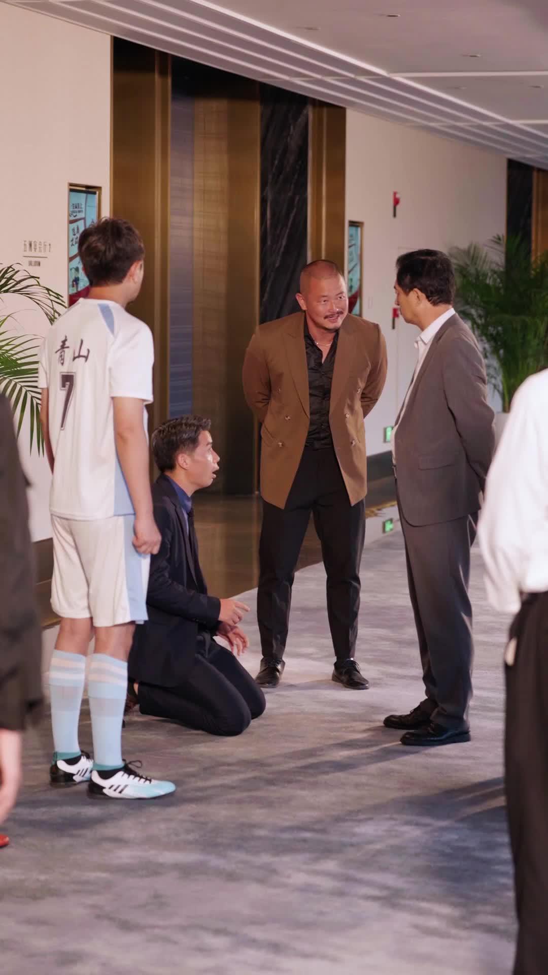 Let’s talk about what happened in that hallway—not just the shouting, not just the shoving, but the *unspoken* tension that turned a corporate corridor into a stage for raw human theater. This isn’t a scene from some over-the-top action flick; it’s a slice of life so charged with subtext, you could feel the carpet fibers vibrating underfoot. At the center of it all stands Qingshan No. 7—Li Wei, the man whose jersey reads like a manifesto and whose face tells a story no scriptwriter would dare assign him. He doesn’t speak much at first. He just *stands*. Sweat glistens on his temples, his breath is uneven, and his eyes—oh, those eyes—they don’t blink when the others argue. They absorb. They calculate. And when he finally opens his mouth, it’s not with volume, but with weight. Every syllable lands like a dropped dumbbell in a silent gym. That’s Football King in its purest form: not about goals or glory, but about dignity under pressure.
