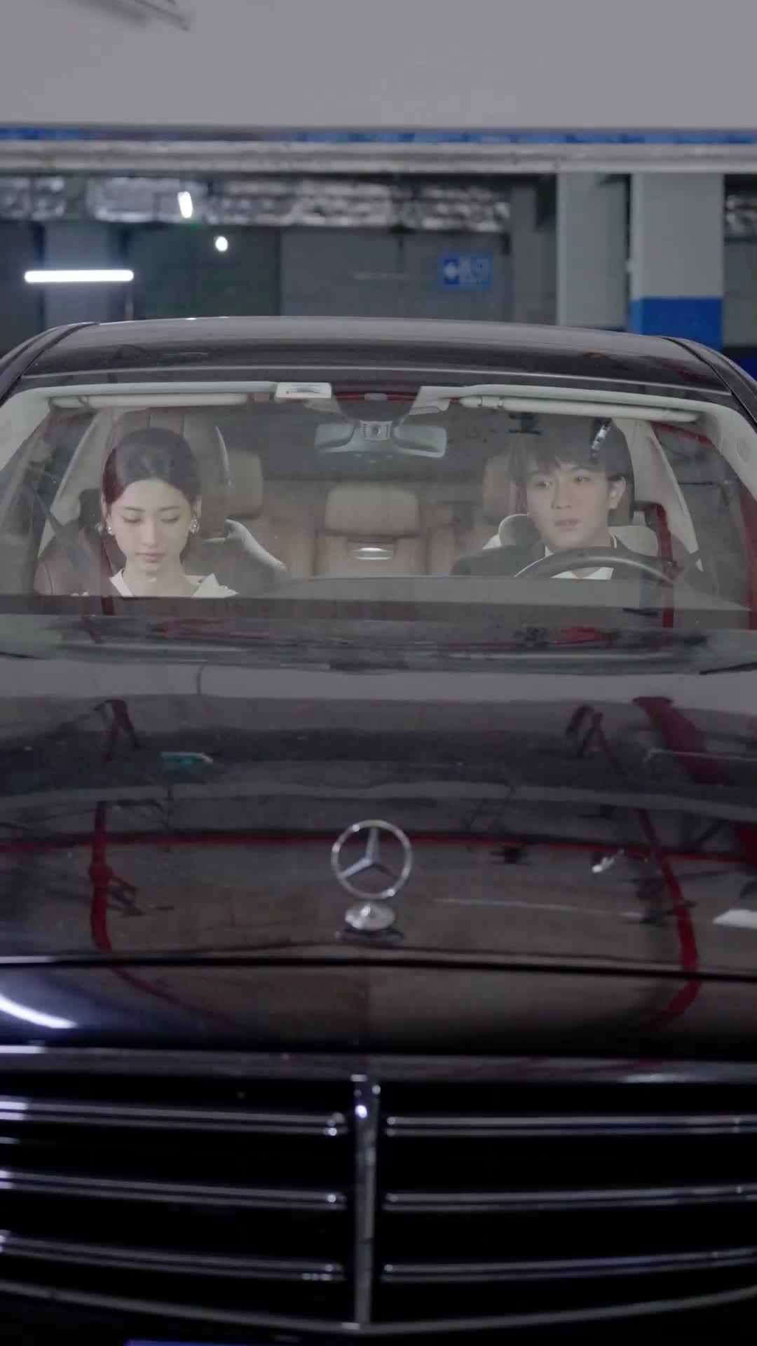 In the dim, fluorescent-lit underground garage—where concrete pillars stand like silent witnesses and the faint hum of ventilation systems fills the air—a black Mercedes S-Class sits parked, its polished hood reflecting fractured red safety lines and the ghostly silhouette of a woman’s departure. This is not just a car scene; it’s a psychological threshold crossed in slow motion. The opening shot frames Li Wei and Chen Xiao inside the vehicle, their postures rigid yet intimate, as if caught mid-breath between decision and consequence. Li Wei, dressed in a tailored black blazer with a delicate gold leaf pin—symbolic of restrained ambition—grips the steering wheel with fingers that never quite relax. His eyes flicker toward Chen Xiao not with urgency, but with the quiet desperation of someone rehearsing a farewell he knows he’ll never speak aloud. Meanwhile, Chen Xiao, draped in an ivory silk blouse with soft pleats that echo the folds of unspoken emotion, adjusts her seatbelt not for safety, but as ritual. Her earrings—circular clusters of pearls and crystals—catch the overhead light each time she turns her head, a subtle punctuation to every micro-expression she suppresses.