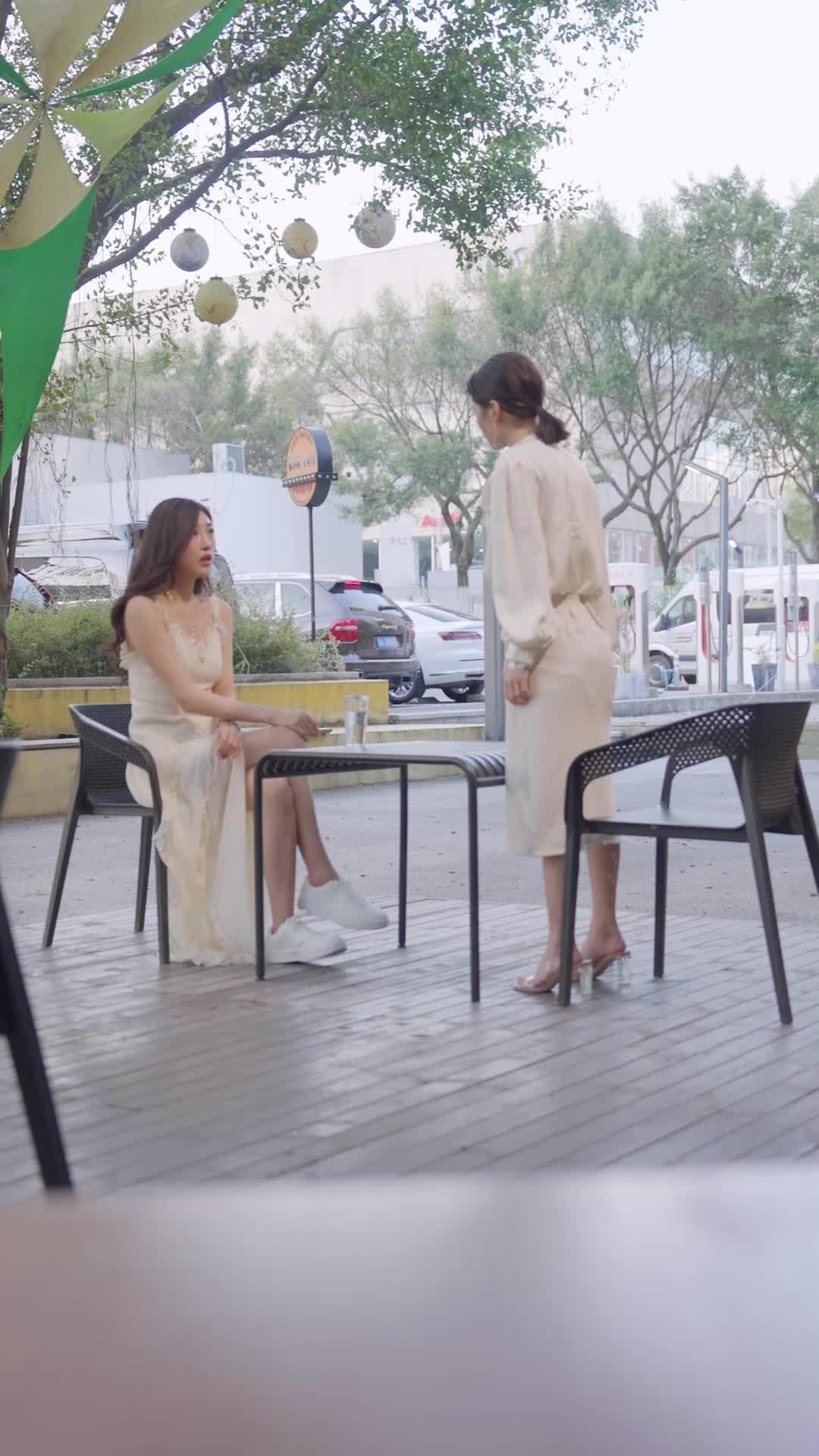 The scene begins with Lin Xiao seated, legs crossed, white sneakers pristine, a picture of casual elegance. But her eyes betray her: they dart toward the street, toward the parked cars, toward the man who’s about to enter her life like a storm front. Su Wei stands, poised, her ivory ensemble immaculate, her posture radiating calm authority. Yet her fingers twitch at her sides—subtle, but telling. She’s not relaxed. She’s *ready*. When Chen Yu appears—tall, sharp-featured, suit impeccably cut—his presence doesn’t disrupt the scene; it *completes* it. Like a missing puzzle piece snapping into place. Lin Xiao’s breath hitches. Su Wei’s gaze narrows, just slightly. The tension isn’t manufactured; it’s *earned*, built through years of unspoken history, buried debts, and promises broken in silence.