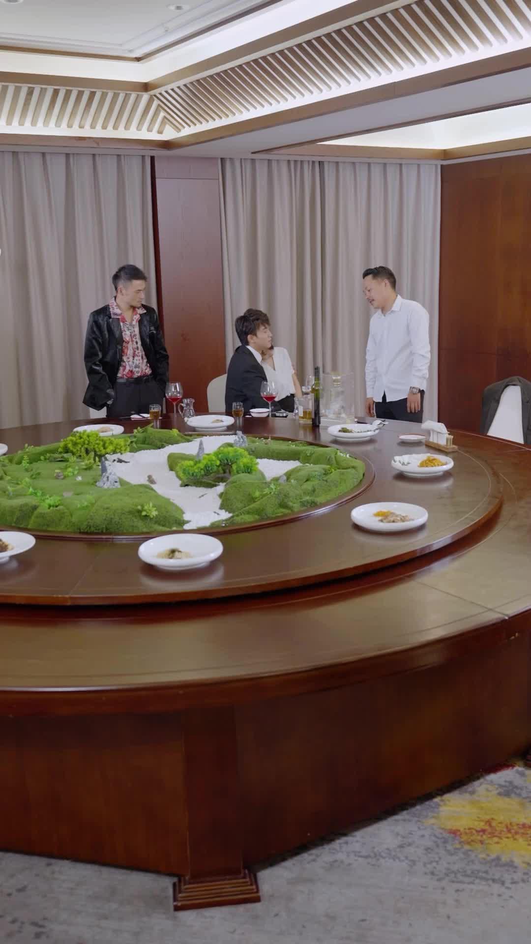 Let’s talk about the real protagonist of this sequence—not Chen Yu, not Lin Xiao, not even the visibly rattled Li Wei. It’s Xiao Feng. The waiter. The man in the black suit who walks in with a tray of water glasses like he’s delivering communion, not refreshments. His entrance is quiet, almost reverent, yet the moment he sets foot inside that opulent dining chamber, the atmosphere shifts. Not because of what he does—but because of how he *doesn’t* react. While Zhang Tao glares, Chen Yu shields, and Li Wei postures, Xiao Feng moves with the calm of someone who has seen this dance before. And not just seen it—he’s choreographed it. The genius of Fortune from Misfortune lies in its subversion of hierarchy: in this world, the person holding the tray holds the power. The table itself is a stage, circular and rotating, symbolizing the cyclical nature of betrayal and redemption. The moss garden at its center? A cruel joke. Nature thrives in chaos; humans, however, build elaborate structures to contain it—and then watch them collapse anyway.