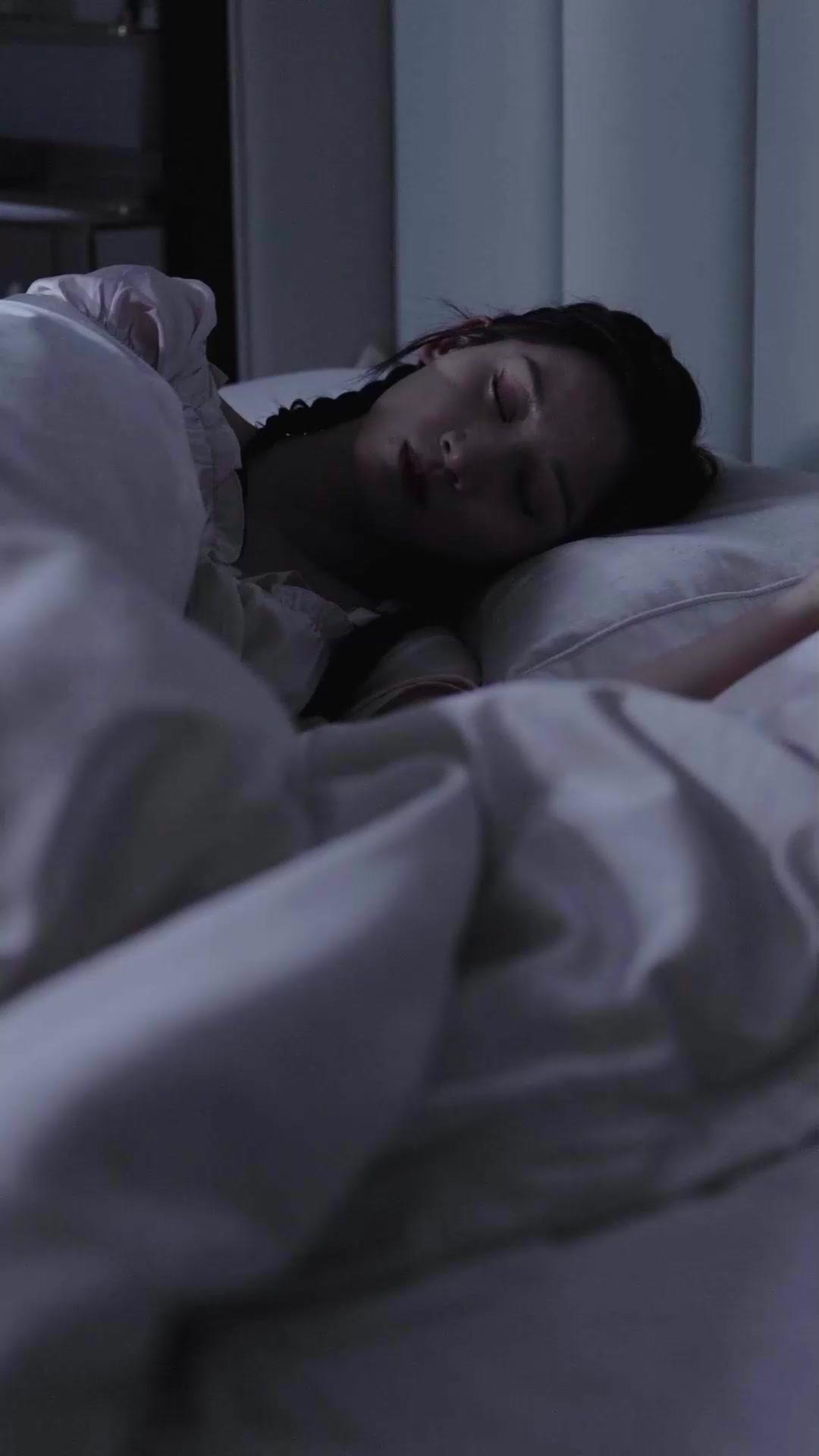 Let’s talk about that chilling sequence in *From Bro to Bride* where the quiet intimacy of a bedroom turns into a psychological minefield—no explosions, no car chases, just two women, one bed, and a silence so thick you could choke on it. The opening shot lingers on Lin Xiao, her face half-buried in white linen, breathing slow and deep, eyes closed, lips slightly parted—she’s not just sleeping; she’s suspended in that fragile state between consciousness and oblivion, the kind of vulnerability only a lover or a predator would recognize. The lighting is cool, almost clinical: blue-gray shadows pool around the edges of the frame, the curtains barely stir, and yet something feels *off*. Not because of what’s visible—but because of what isn’t. That’s when the curtain slit appears. Just a sliver of darkness behind sheer fabric, like a wound in the room’s calm. And then—*she* steps through. Not with stealth, but with purpose. Mei Ling, dressed in black from head to toe—turtleneck, fitted pants, a cap pulled low over her brows—moves like someone who’s rehearsed this moment a hundred times. Her red lipstick is the only splash of color in a monochrome world, and it’s not accidental. It’s a warning. A signature. She doesn’t rush. She doesn’t whisper. She parts the curtain with one hand, fingers curled like claws, and peers in—not at Lin Xiao’s face, but at the space *around* her. The camera tilts down as she enters, catching the way her boots barely make a sound on the carpet, how her shoulders stay squared even as her breath hitches for half a second. This isn’t a break-in. This is a homecoming. Or maybe a reckoning.
