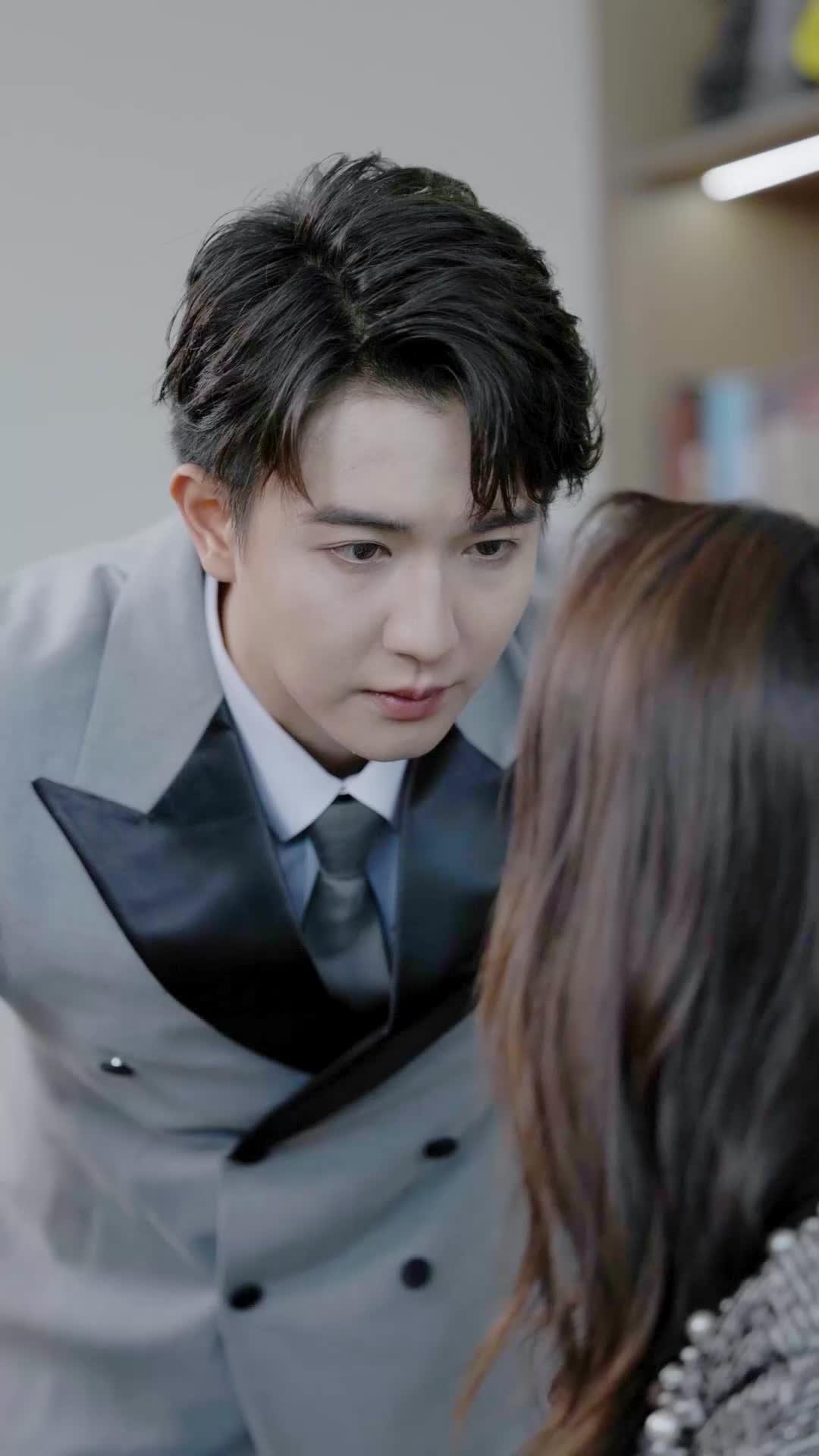The opening frames of *From Bro to Bride* don’t just introduce characters—they drop us into a pressure cooker. Lin Zeyu, impeccably dressed in a dove-gray double-breasted suit with black satin lapels, leans over the desk like a predator circling prey. His posture is controlled, but his eyes—wide, unblinking, almost trembling—betray something deeper than professional authority. He’s not merely confronting Li Miao; he’s interrogating her silence. The camera lingers on his knuckles pressed against the polished wood, veins faintly visible beneath pale skin, as if he’s holding back more than words. Li Miao, seated in the leather executive chair, wears a cropped tweed jacket studded with pearls and sequins—a deliberate armor of glamour against vulnerability. Her fingers rest lightly on the desk, but her shoulders are rigid, her breath shallow. When she rises, it’s not with defiance, but with a kind of exhausted resolve. She doesn’t shout. She doesn’t flee. She simply stands, adjusts the hem of her jacket, and meets his gaze head-on. That moment—where power shifts not through volume but through stillness—is where *From Bro to Bride* reveals its true texture: this isn’t a corporate drama; it’s a psychological duel disguised as a boardroom meeting.