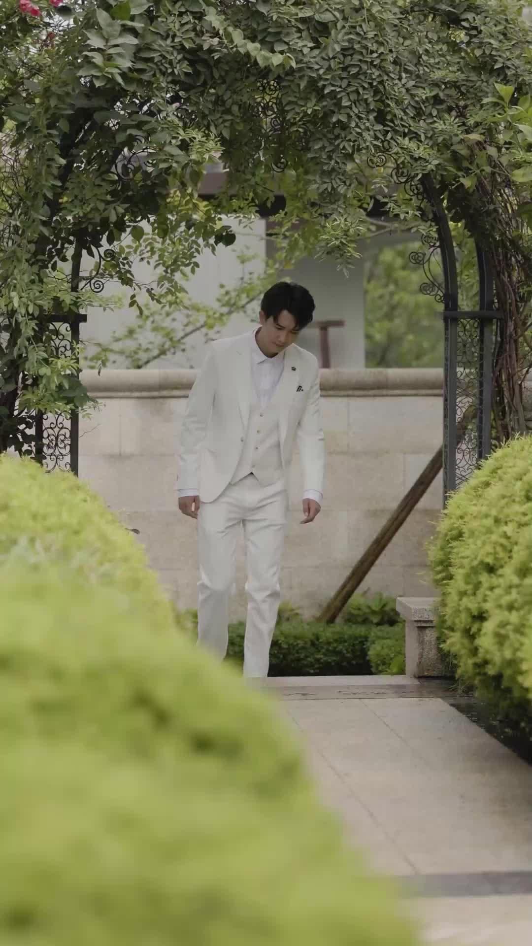 Let’s talk about the kind of scene that lingers in your mind long after the credits roll—not because it’s flashy or explosive, but because it’s *human*. In *From Bro to Bride*, Episode 7, we witness a sequence so meticulously staged and emotionally layered that it feels less like fiction and more like a memory you didn’t know you had. It begins with Li Zeyu—yes, *that* Li Zeyu, the impeccably dressed groom-to-be who walks through the garden archway like he’s stepping into his own destiny. His white three-piece suit isn’t just attire; it’s armor. Every button, every fold, every pin on his lapel whispers control, precision, expectation. He moves with purpose, eyes downcast at first, then lifting—just slightly—as if scanning for something unseen. The camera lingers on his hands, relaxed but not idle, fingers twitching once near his thigh. A nervous habit? Or the quiet tremor of someone standing on the edge of a life-altering decision?
