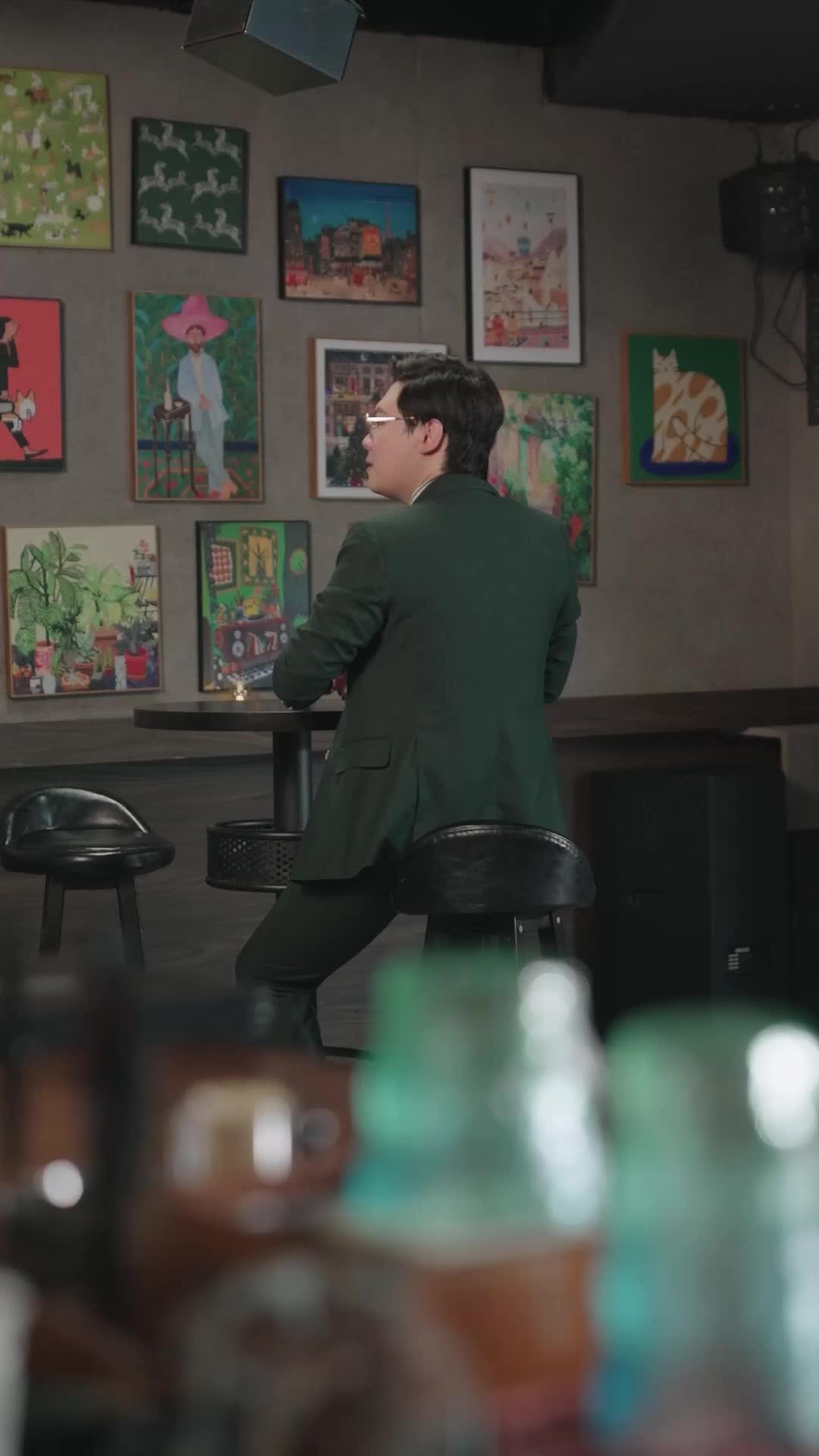 Li Wei enters first—not with urgency, but with practiced nonchalance. His green double-breasted suit is immaculate, the gold buttons catching the low light like subtle warnings. He wears a striped shirt and a paisley tie that feels deliberately vintage, as if he’s curated his appearance to signal both refinement and control. His glasses, thick-framed and slightly oversized, magnify his eyes just enough to make his expressions feel amplified—especially when he speaks. In those early close-ups, his hands are clasped tightly, fingers interlaced, knuckles pale. He’s not relaxed. He’s rehearsing. When he turns toward Chen Mo, who arrives moments later in a charcoal plaid suit, the camera lingers on the contrast: Li Wei’s lush green versus Chen Mo’s muted gray-blue grid—a visual metaphor for their dynamic. One is ornamental, theatrical; the other is structured, restrained.