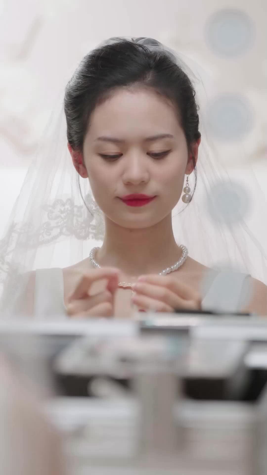 Let’s talk about the quiet tension that lingers in the air before a wedding—not the nervous giggles or the last-minute dress adjustments, but the kind of silence that hums with unspoken history. In this tightly framed sequence from *From Deceit to Devotion*, we’re not watching a traditional bridal prep scene; we’re witnessing a psychological theater where every gesture is a clue, every glance a confession waiting to be decoded. The bride, Lin Xiao, sits before a vanity mirror, her hands trembling just slightly as she fastens pearl earrings—delicate, classic, almost too perfect. Her red lipstick is precise, her veil pinned with surgical care, yet her eyes flicker toward the doorway, not with anticipation, but with something sharper: wariness. She knows someone is watching. And he is.