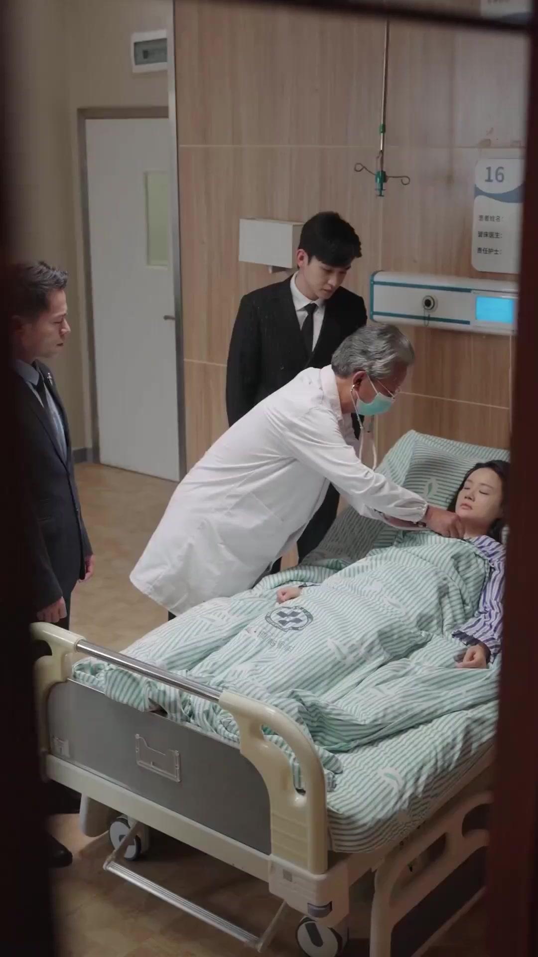 Let’s talk about the bed. Not the metal frame, not the wheels, not even the green-and-white striped sheets—though those, too, tell a story. Let’s talk about the *space* around it. In *From Deceit to Devotion*, Room 16 becomes a psychological amphitheater, where every footstep echoes with implication, every glance carries consequence. Xiao Yu lies at its center, unconscious but never passive—her stillness is the fulcrum upon which the entire narrative tilts. Around her, four figures orbit: Dr. Lin, Zhou Jian, Li Wei, and Shen An. Each occupies a quadrant of moral ambiguity, and none of them are who they appear to be. Dr. Lin, for instance, wears his white coat like a shield, but his hesitation when Zhou Jian speaks reveals a man caught between oath and obligation. He adjusts his mask twice in under ten seconds—not out of hygiene, but out of anxiety. He knows more than he’s saying. He *always* does. And yet, he doesn’t intervene when Li Wei subtly blocks Shen An’s path with his shoulder, a gesture so casual it could be misread as courtesy. But it’s not. It’s control. Li Wei’s body language throughout the scene is a masterclass in restrained aggression: hands clasped behind his back, shoulders squared, chin lifted just enough to suggest dominance without overt threat. He’s not afraid of Shen An. He’s afraid of what she might *do* if left unchecked.