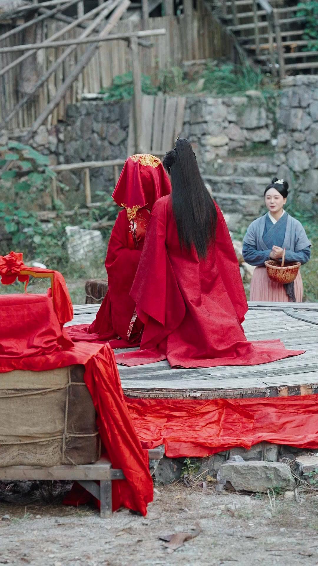 There’s a particular kind of dread that settles in your chest when a wedding begins with a gong instead of a flute. In Frost and Flame, that dread isn’t subtle—it’s woven into the fabric of the scene, stitched between the folds of the bride’s red robe, hidden in the rustle of the groom’s sleeves as he reaches for the gourd cup. The ceremony opens not with music, but with silence—broken only by the soft thud of feet on packed earth and the distant creak of bamboo scaffolding. Two figures sit motionless on a raised dais, their backs to us, as if the audience is being asked to witness not a union, but a verdict. The bride’s veil is thick, embroidered with phoenixes that seem to writhe under the light, while Vincent White sits beside her, his posture regal, his expression unreadable—except for the faint pulse visible at his temple, a betraying rhythm against the stillness.