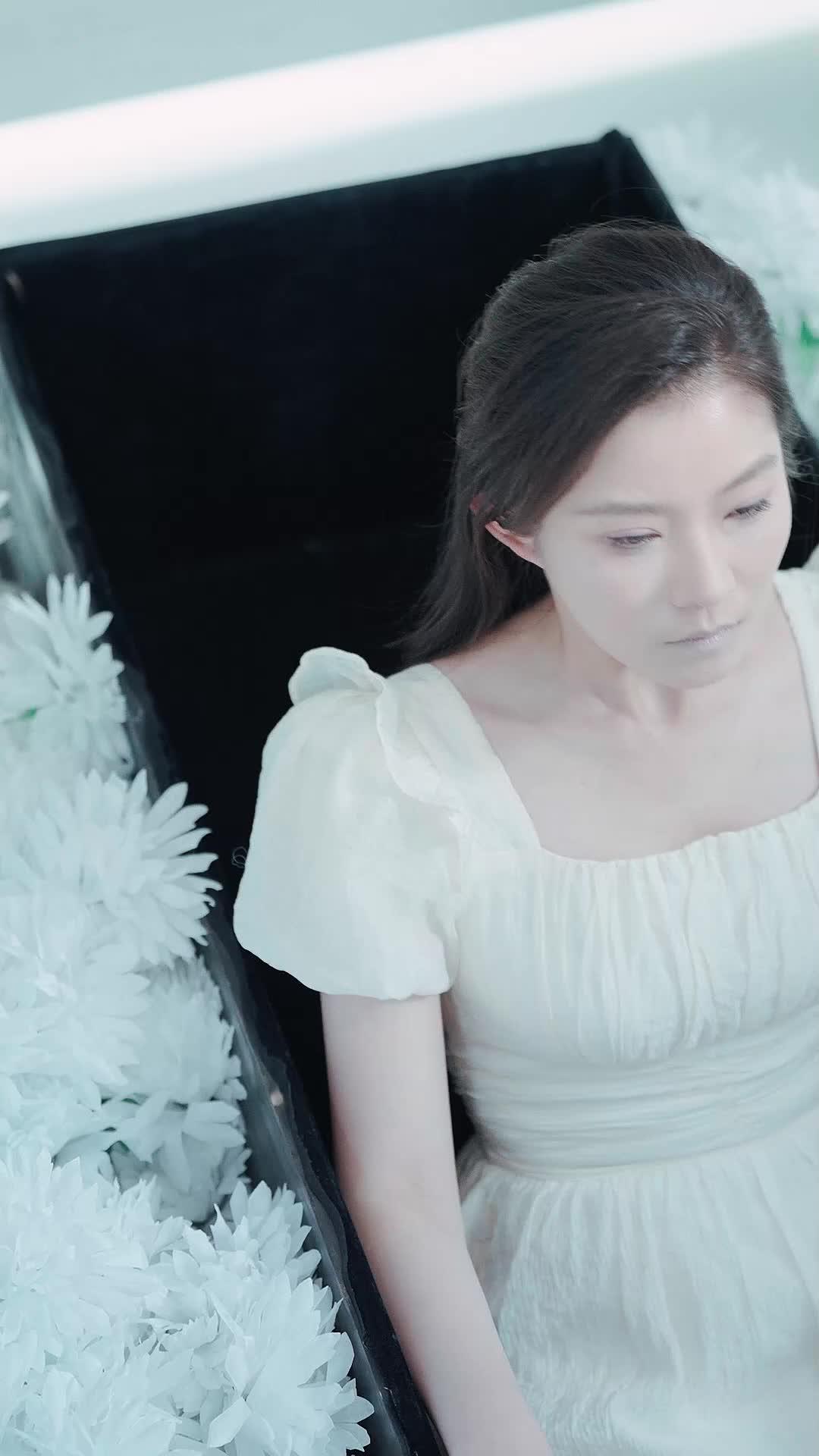 Let’s talk about the most unsettling funeral scene since that one in ‘The Sixth Sense’—except this time, the dead woman isn’t just watching. She’s *listening*. And maybe even smiling. In Gone Wife, the opening sequence doesn’t just set the tone—it detonates it. A young woman, Hua Ying, lies in an open black casket, dressed in a delicate ivory gown with puffed sleeves and soft pleats, her face powdered pale, eyes closed, lips slightly parted as if caught mid-dream. White chrysanthemums spill over the edges like snowdrifts, framing her like a saint in a forgotten chapel. The lighting is clinical, almost surgical—cool blue-white tones, fluorescent arcs overhead, marble floors reflecting every footstep like a silent echo chamber. This isn’t grief. This is performance. And everyone in the room knows it.