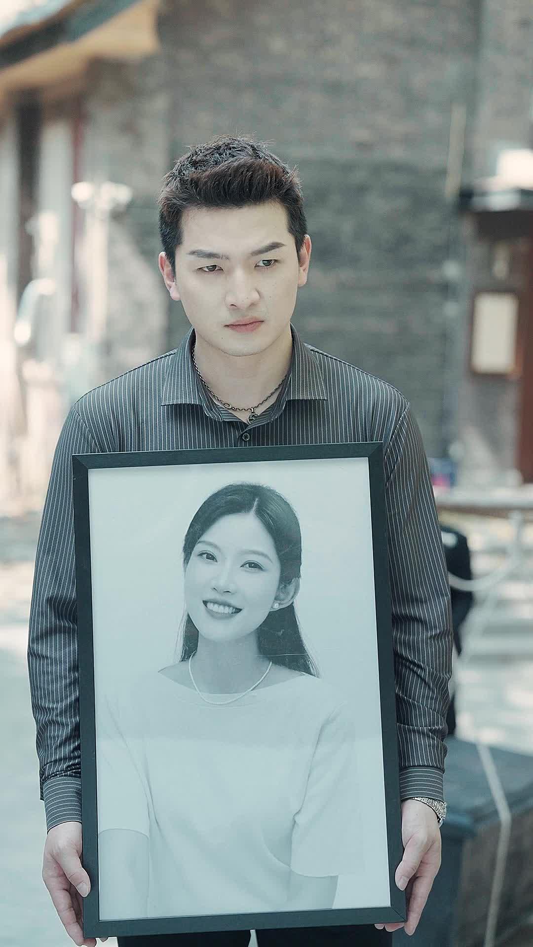 The opening shot of Gone Wife is deceptively simple—a man in a striped shirt, eyes steady, holding a black-framed portrait of a smiling woman. Her image is crisp, almost luminous against the muted tones of the alley behind him. She wears a white top, a delicate necklace, pearl earrings—details that suggest care, intention, even reverence. But his expression? Not grief. Not sorrow. Something colder. A controlled stillness, like a man standing at the edge of a cliff, waiting to see if the wind will push him or hold him back. That portrait isn’t just a memory; it’s a weapon, a statement, a silent accusation wrapped in glossy paper. And the way he holds it—both hands, centered, chest-high—suggests he’s not carrying a relic. He’s presenting evidence.