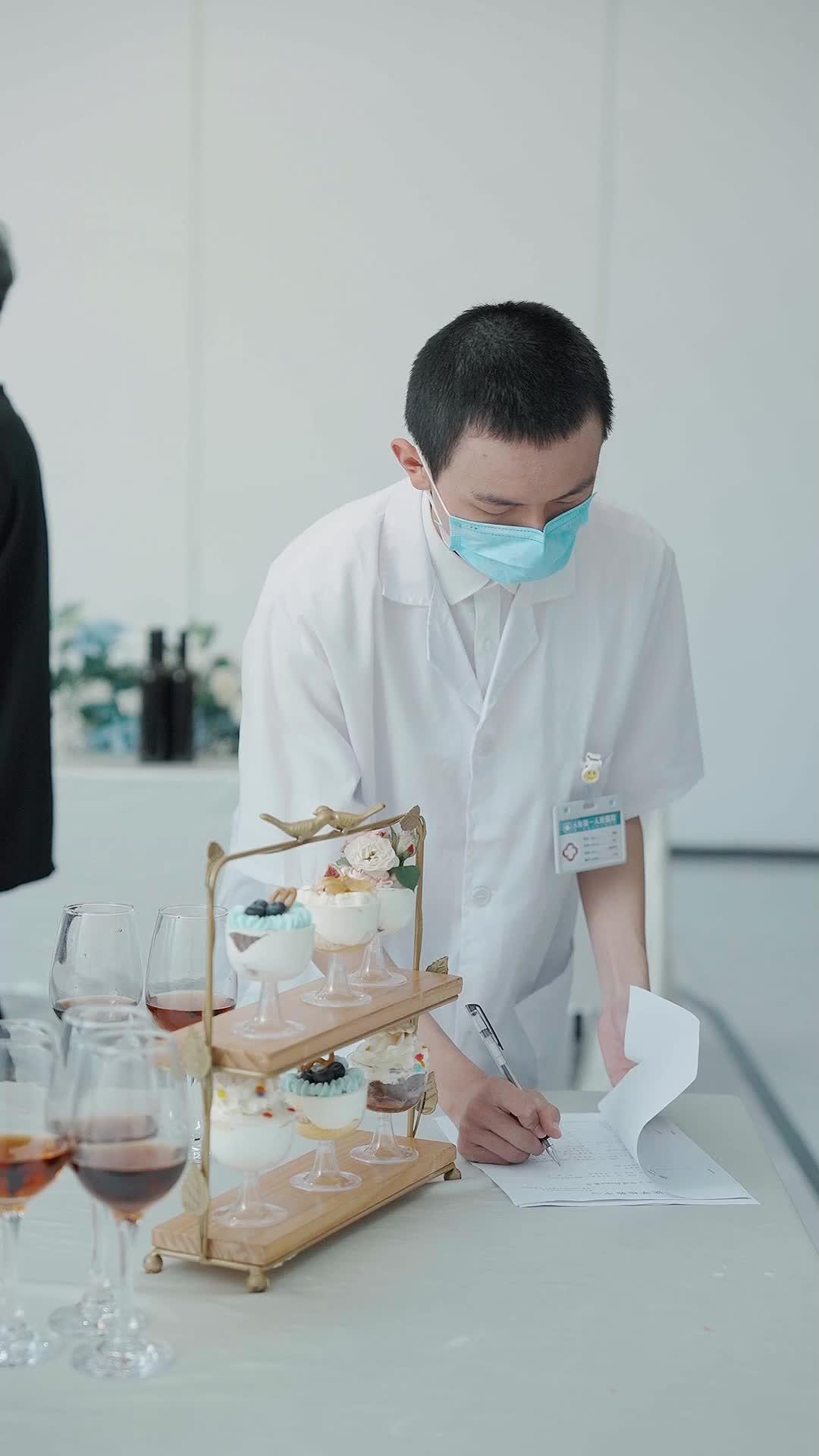 In the sleek, minimalist hall of what appears to be a high-end event space—white walls, zigzag-patterned marble flooring, and an ethereal glass chandelier suspended like frozen breath—the air hums with tension far denser than the floral arrangements or the delicate dessert tower perched on a brass stand. This is not a wedding reception. It’s a signing ceremony. And the document in question? Not a marriage license—but something far more devastating: a paternity report. The scene opens with a young man in a white lab coat, mask pulled below his chin, pen poised over a clipboard. His posture is clinical, precise. He’s not a celebrant; he’s a witness. A technician. A messenger of truth. Behind him, wine glasses half-filled with rosé sit untouched, as if even the alcohol knows better than to interfere with what’s about to unfold. The camera lingers on the tiered dessert stand—not for its elegance, but for its irony: sweetness arranged in perfect symmetry, while human lives teeter on the edge of collapse.