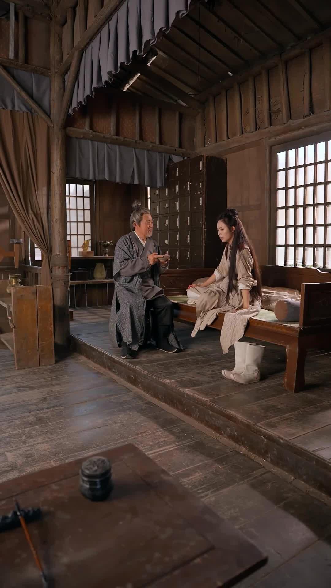 What makes this exchange so riveting is how the environment mirrors their internal states. Behind Xiao Yue, a lattice window casts grids of light across her lap, as if she is already being judged by invisible lines. To her left, a cabinet of drawers—each labeled with faded characters—suggests a lifetime of catalogued remedies, yet none seem applicable to the wound she carries within. On the low table in the foreground, a rolled scroll lies beside an inkstone and brush, tools of record-keeping, of law, of history. They are untouched. No one is writing this down. Because some truths, in this world, are too dangerous to commit to paper. Master Lin’s bowl remains empty throughout most of the sequence—not because he forgets to serve, but because he waits. He waits for her to speak first. He knows that once she breaks silence, the narrative shifts irrevocably. And Xiao Yue knows it too. She touches her side again, not in agony, but in remembrance. A memory flashes—not of violence, but of choice. Of standing at a crossroads where mercy and justice wore the same face, and she chose the blade.